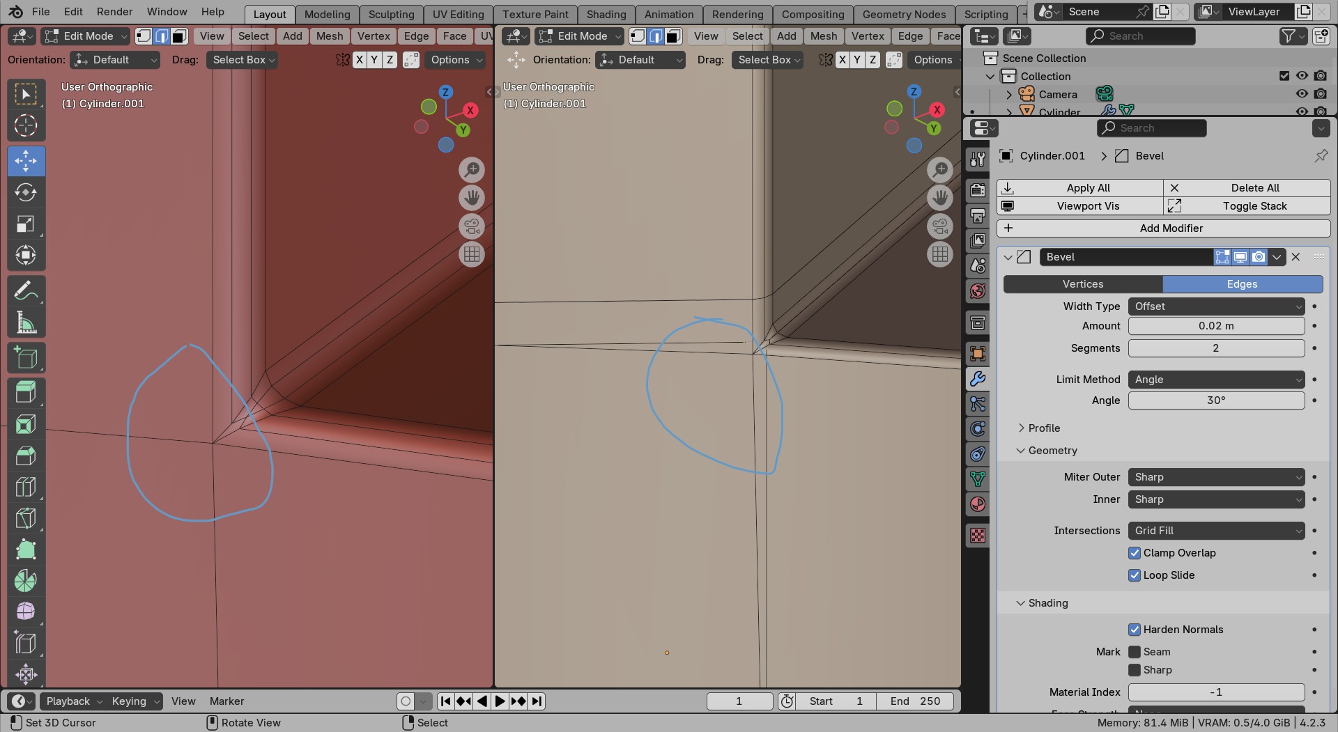 Bekomme einfach um die untere Kante, welche mit dem Zylinder verbunden ist keinen sauberen Kantenabschluss hin.