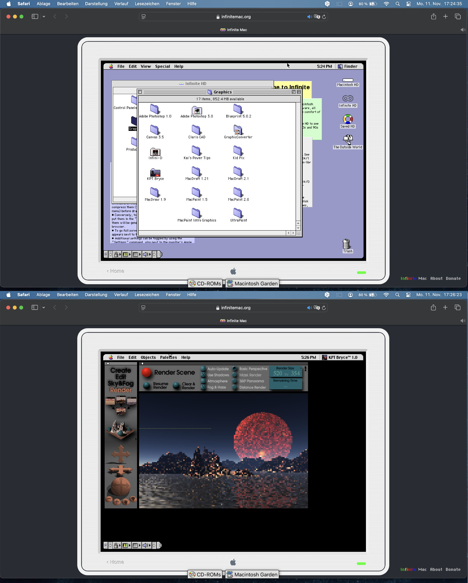 Diese Website simuliert ein uraltes MacOS 9. Also das System aus jenen fernen Zeiten, als der Bundeskanzler noch Helmut Kohl hieß.