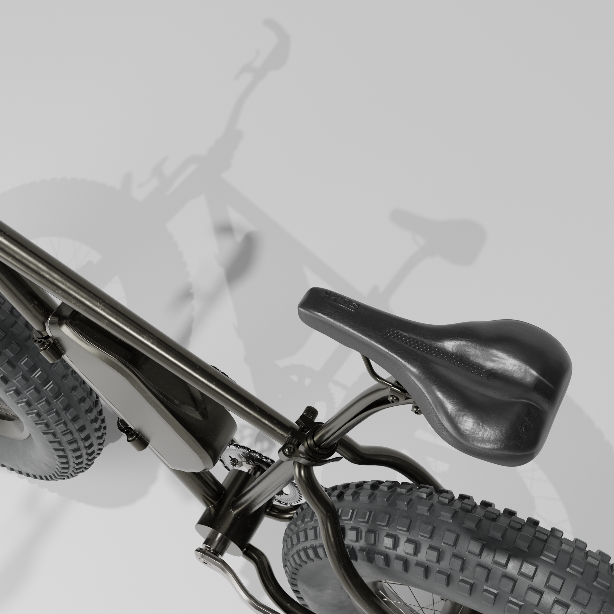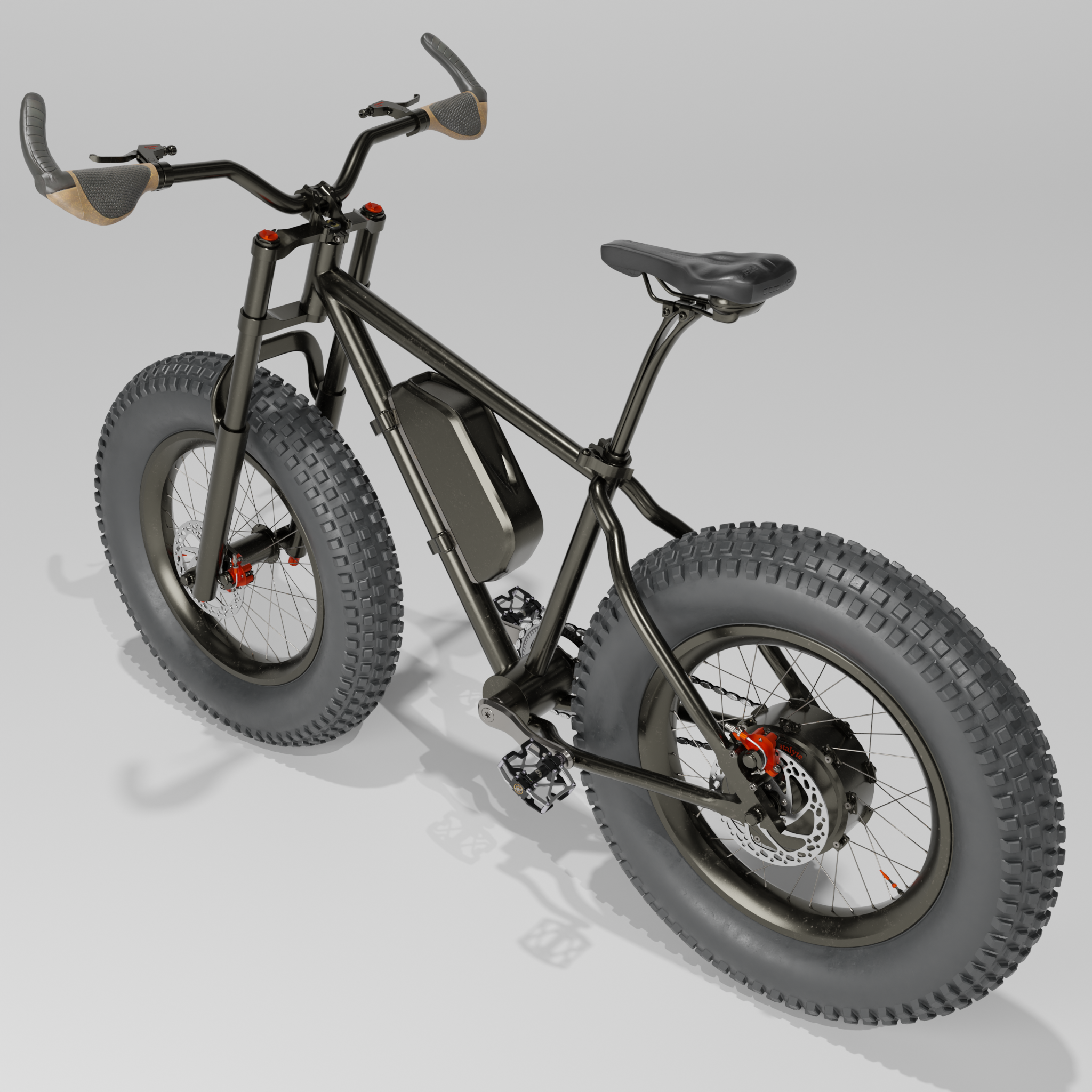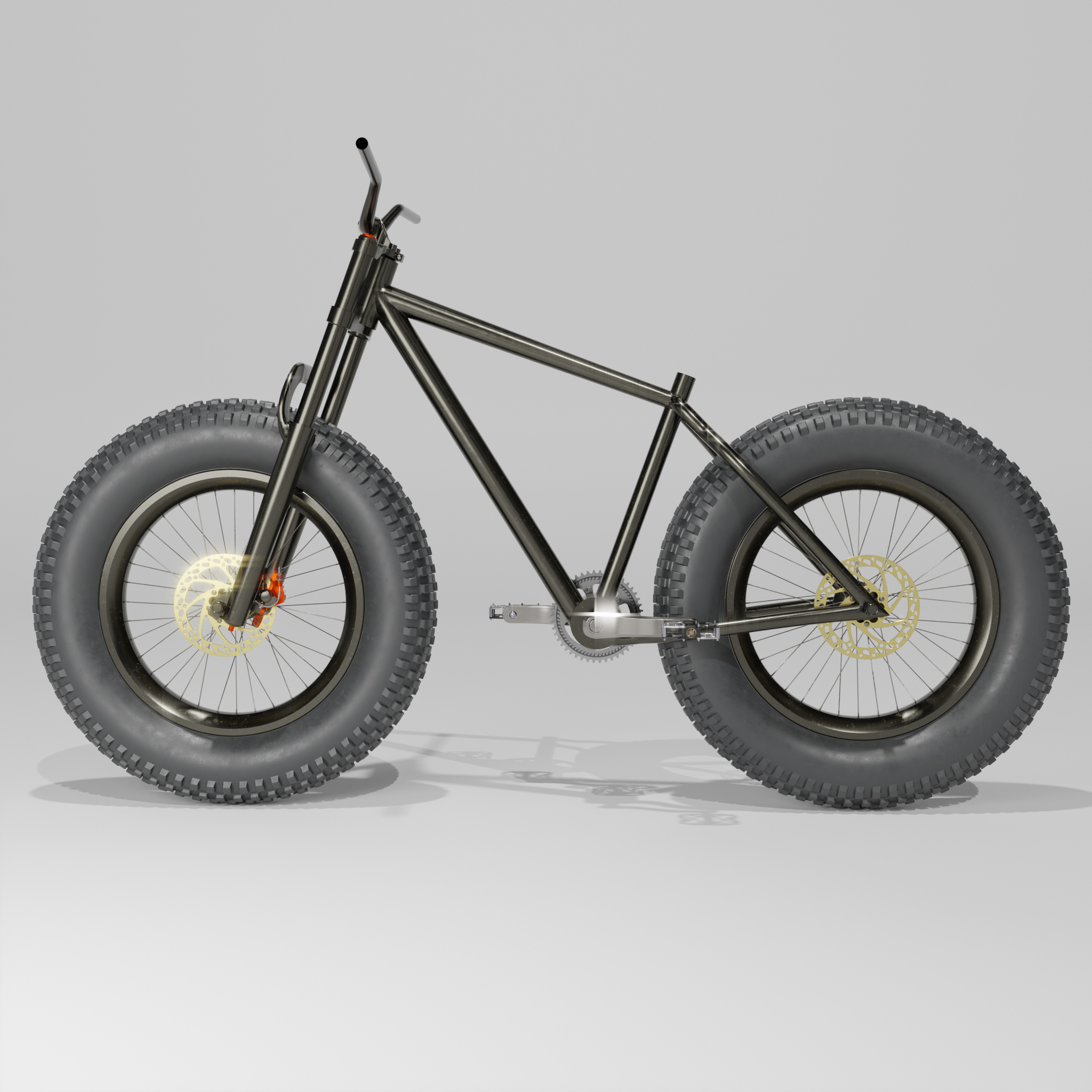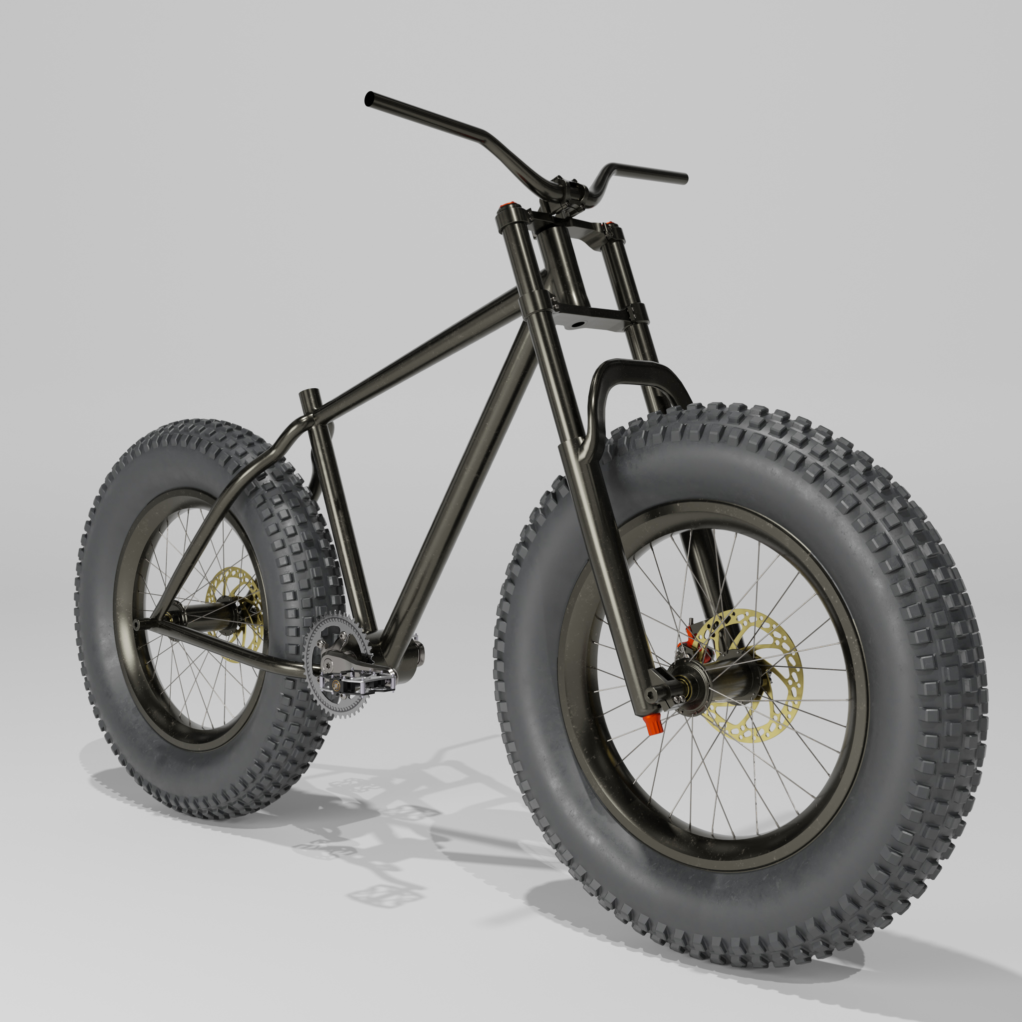 • Ich bin heute ein ganzes Stück weiter gekommen mit dem Blender 4.3 Fatbike "Eisbär". Neue Lenkergriffe, 1000 Watt Motor, der gesamte Antriebsstrang ist fertig geworden inklusive einer neuen Kurbelgarnitur und die Kette und die Räder können durch Kurbelbewegungen in Fahrt gebracht werden. Der Lenker bewegt die Vorderradgabel. Ein neuer 195€ (im echten Leben) teurer Gesundheitssattel war auch noch drin. Außerdem ist der Rahmen so weit fertig inklusive der Radaufhängung und Bremssattelhalterung. Also für heute war das schon richtig viel. Einen Platz für den Akku habe ich noch nicht und Spiegel nebst Anbauteilen fehlt auch noch, genauso wie ein Ständer und Bordcomputer. Aber morgen ist ja auch noch ein Tag. Bis dahin gibt es einige W.I.P. Bilder.