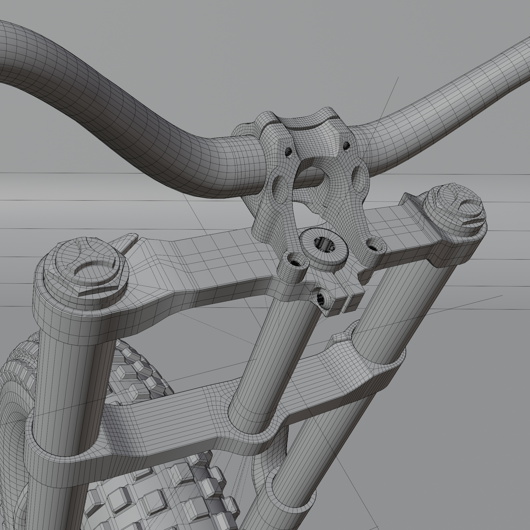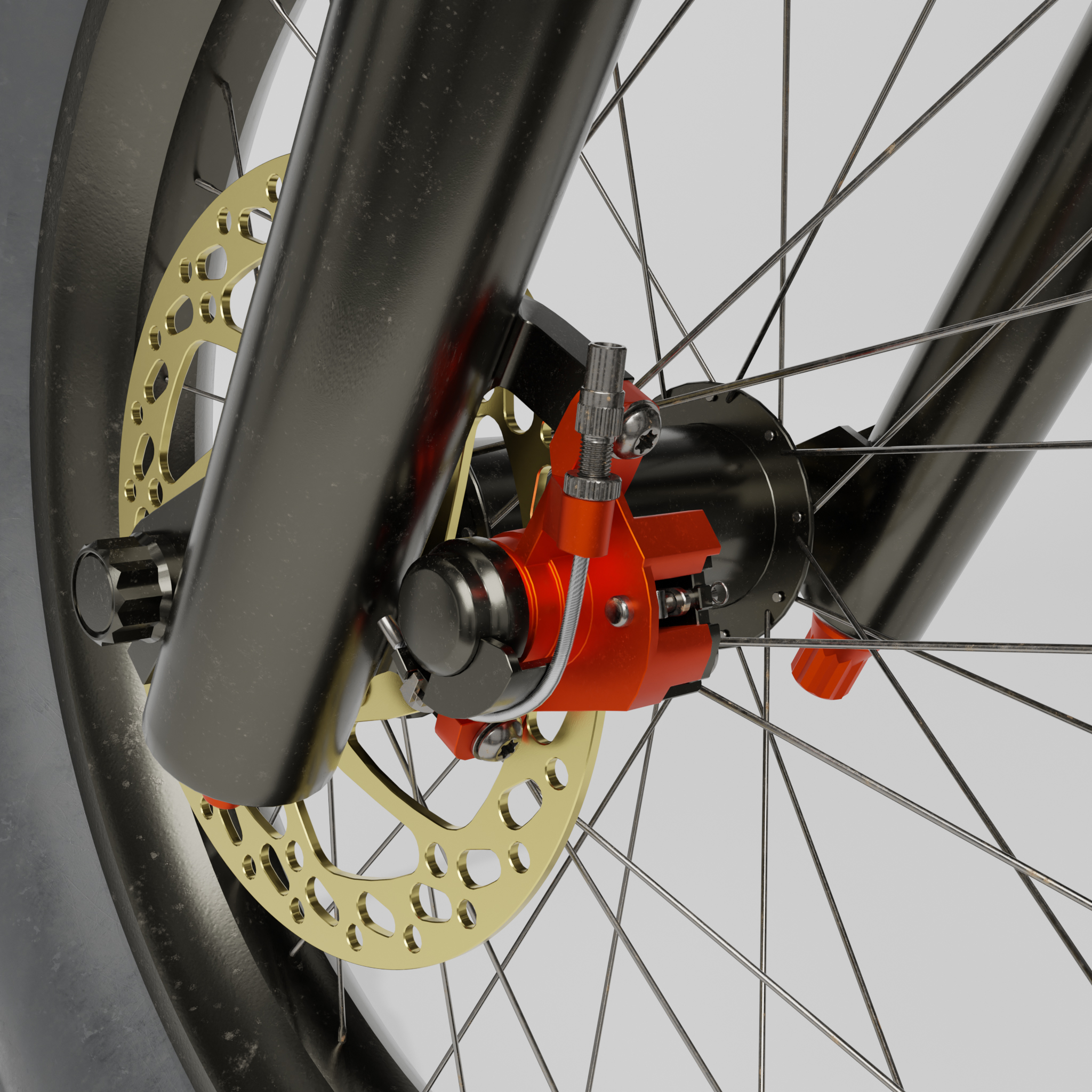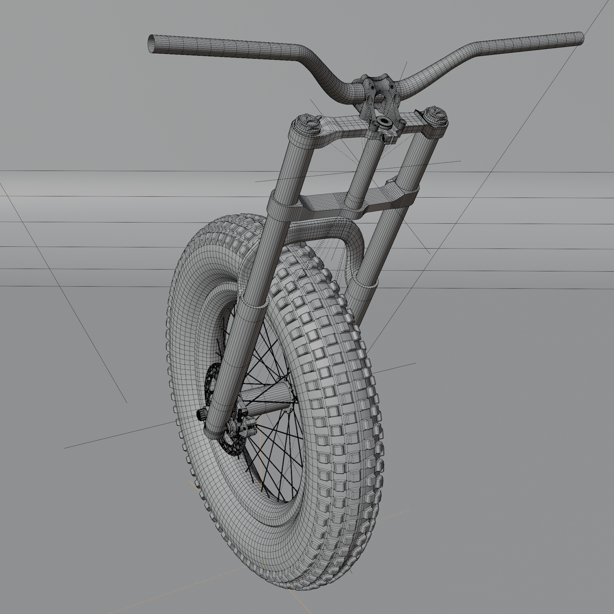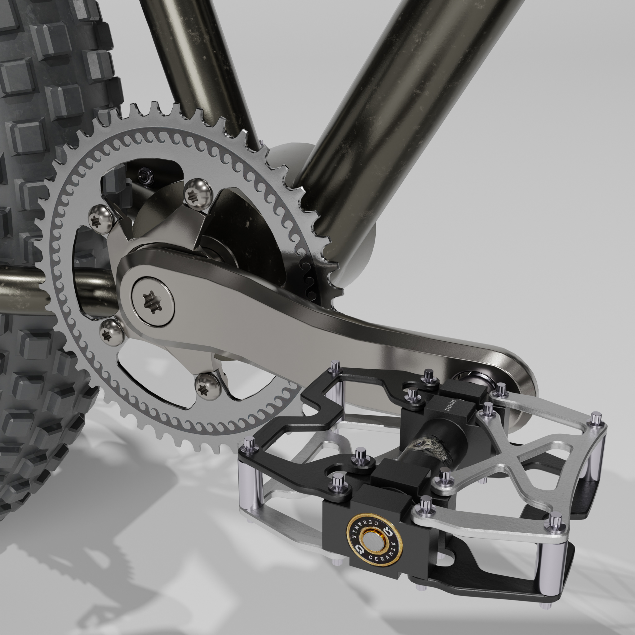 • Ich bin heute ein ganzes Stück weiter gekommen mit dem Blender 4.3 Fatbike "Eisbär". Neue Lenkergriffe, 1000 Watt Motor, der gesamte Antriebsstrang ist fertig geworden inklusive einer neuen Kurbelgarnitur und die Kette und die Räder können durch Kurbelbewegungen in Fahrt gebracht werden. Der Lenker bewegt die Vorderradgabel. Ein neuer 195€ (im echten Leben) teurer Gesundheitssattel war auch noch drin. Außerdem ist der Rahmen so weit fertig inklusive der Radaufhängung und Bremssattelhalterung. Also für heute war das schon richtig viel. Einen Platz für den Akku habe ich noch nicht und Spiegel nebst Anbauteilen fehlt auch noch, genauso wie ein Ständer und Bordcomputer. Aber morgen ist ja auch noch ein Tag. Bis dahin gibt es einige W.I.P. Bilder.