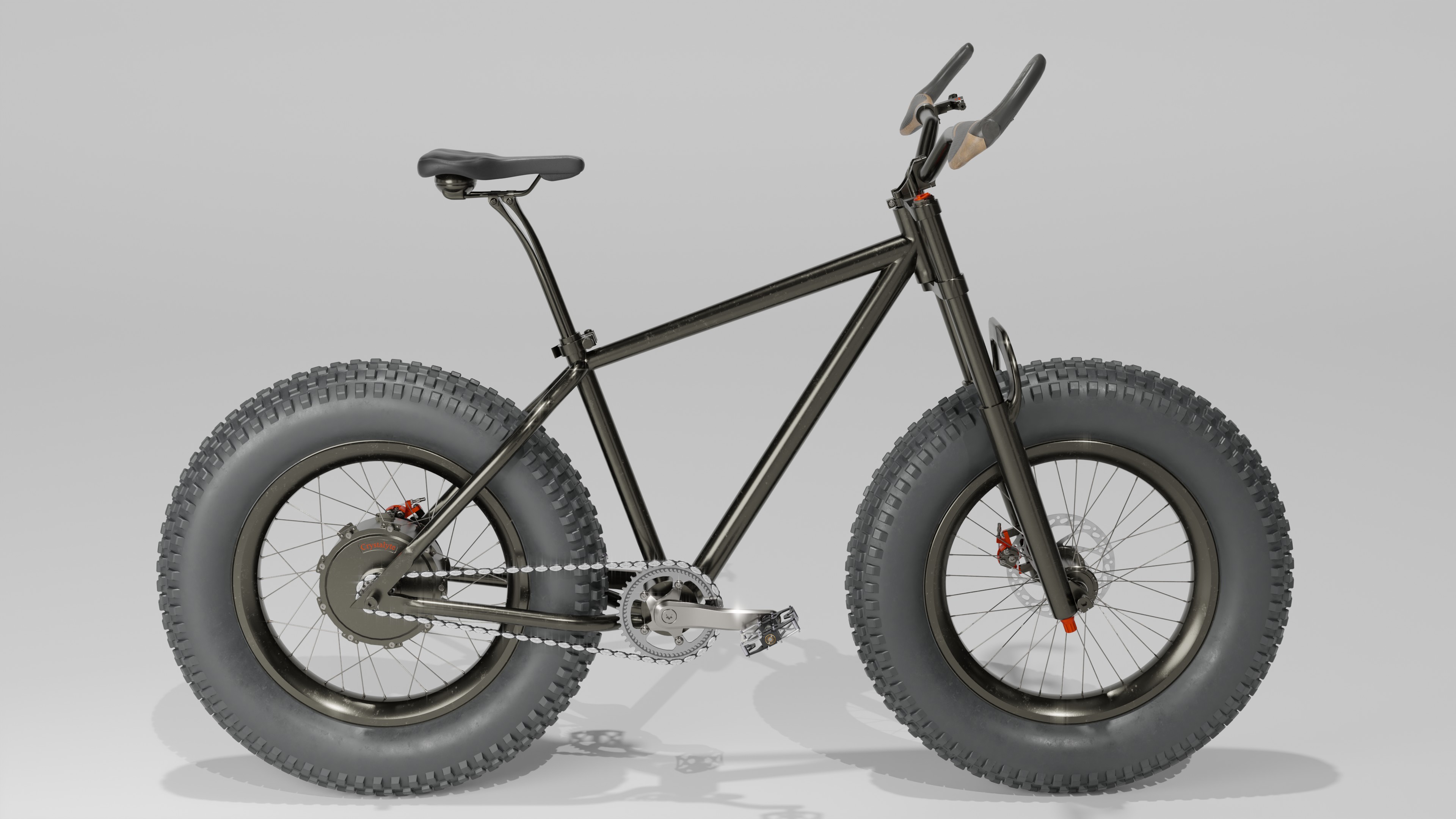 Ich habe mich dazu entschlossen noch ein letztes Fatbike zu modellieren der "Eisbär" ist spezialisiert auf Schnee oder viel mehr im Schnee zurecht zu kommen. das Rad hat sehr kräftige 29 / 5.0 Zoll Stollen Reifen. der Motor wird ein 1000 Watt heck narben Motor sein.