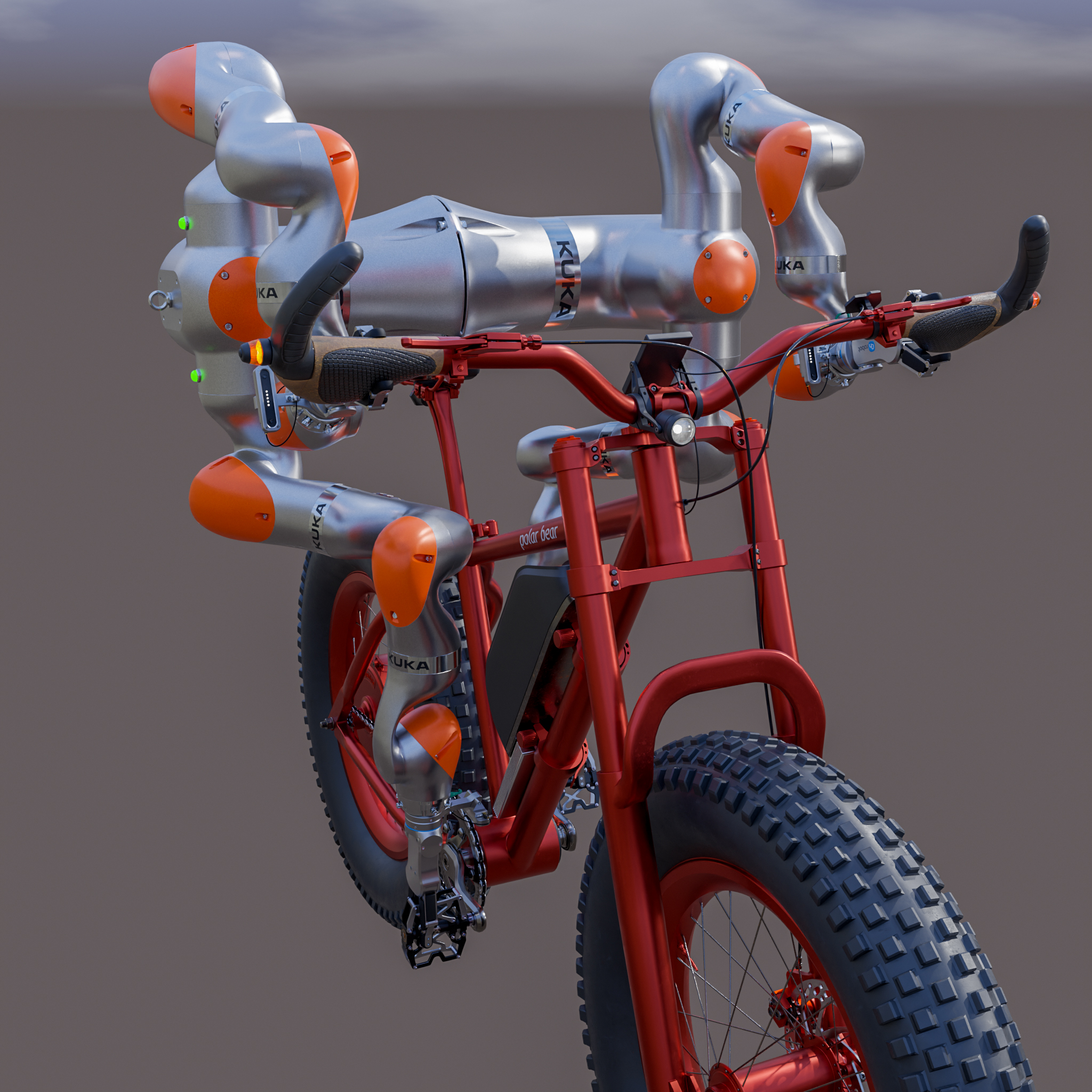 • Ich weiss nicht ob ich ein IK rig mit diesem gelekne ungetüm beweltigen kann aber es ist eine nette Idee. 4 * KUKA iiwa 14 Robotarme mit je 7 gelenken + 1 je zwei arme. bedinen zusammen ein e-fatbike.