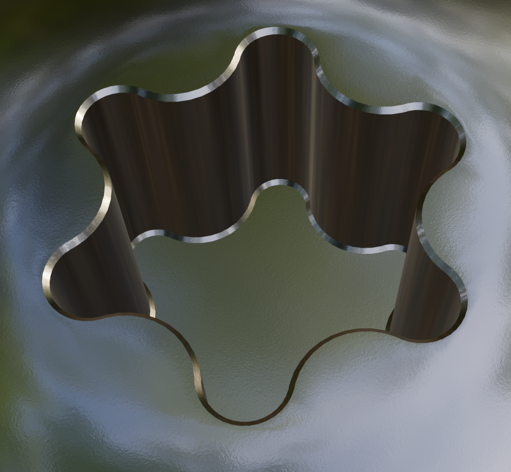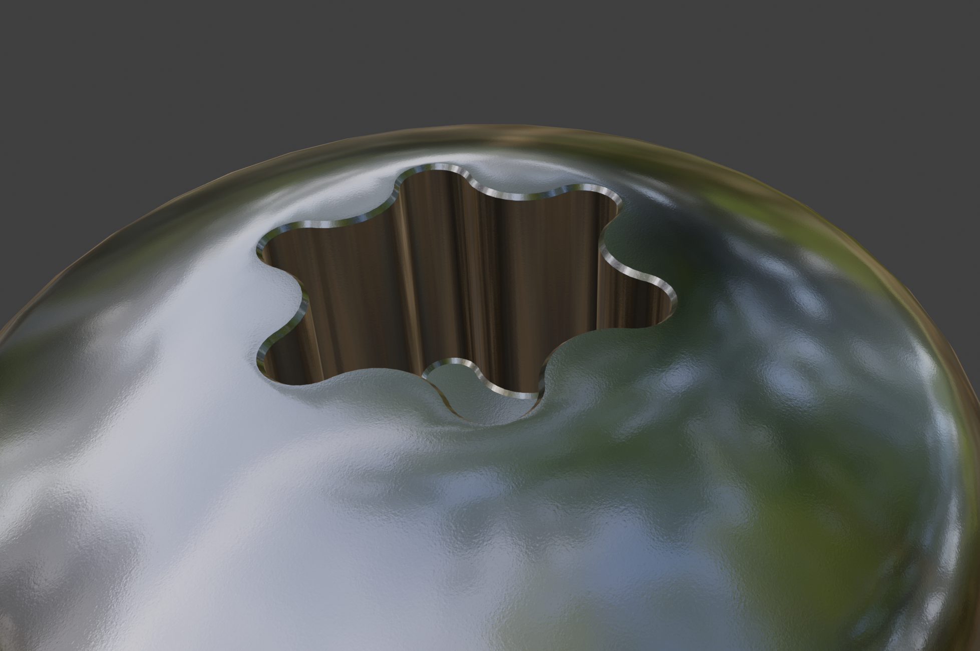 Die Torx-Mulde, die durch ihre 6-Punkt-Sternform charakterisiert ist, bietet nicht nur eine ästhetisch ansprechende Optik, sondern auch eine funktionale Verbesserung. Durch das Beveling der Kanten und das Hinzufügen von scharfen Markierungen wird die Lichtreflexion optimiert, was zu einem realistischeren und detaillierteren Render führt.