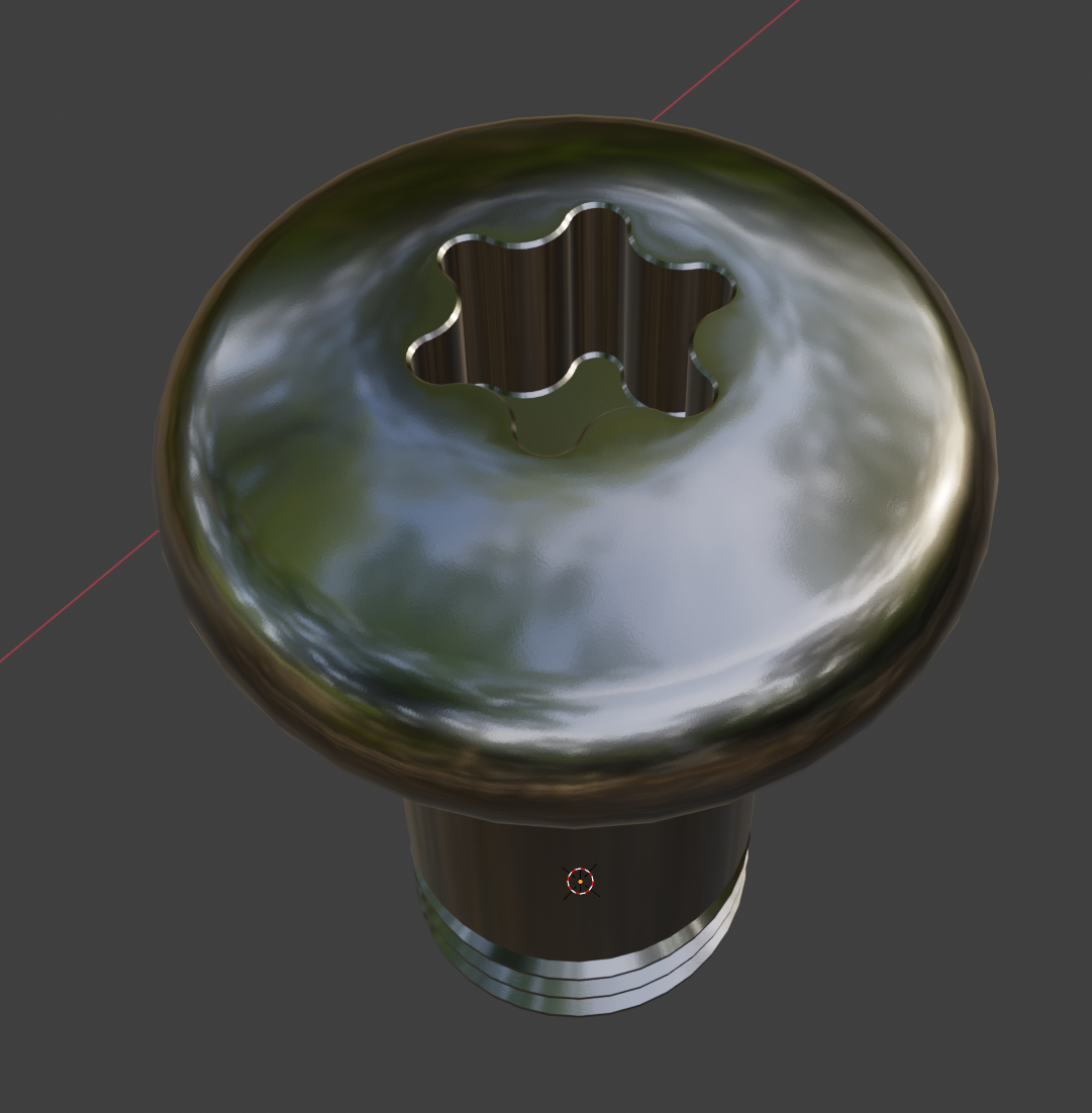 Torx sind doch die schönsten Mitnahmevorrichtungen für Schraubbolzen! Und wenn man die Bolzen aus Blenders BoltFactory gut behandelt, erst recht. Deswegen werden diese Bolzen von mir UV-abgewickelt, und die Torx-Mulde wird scharf gekennzeichnet und gebavelt. Dadurch entstehen kleine Lichtreflexionen, die den 3D-Eindruck erheblich verbessern.
