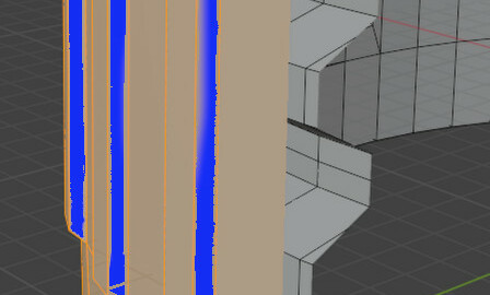 • Wenn ich Dich richtig verstanden habe, müsste es funktionieren, wenn Du die blau markierten Flächen der Riffel (also jeweils deren seitlichen und oben und unteren aus der Auswahl rausnimmst, bevor du mit Alt + S skalierst. Das geht am besten, wenn der Select Mode auf Fläche steht.