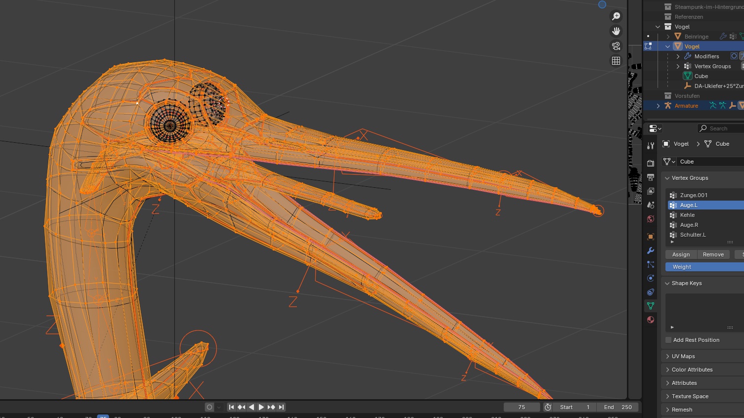 Die Gewichtung der Bones überprüft und hier z.B. den Einfluss des Bones für den Augenball korrigiert, da der auch das Kopfmesh beeinflusst hat.