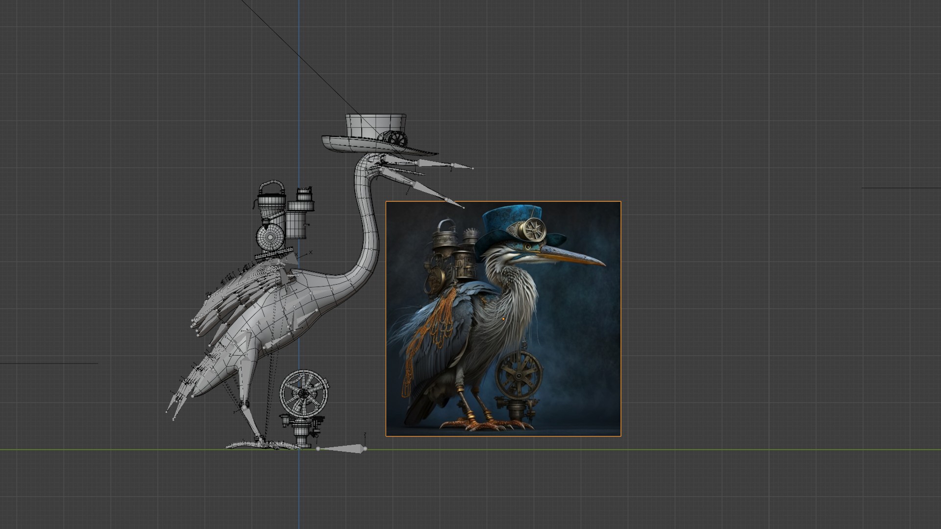 Ich habe im März 2023 auf Artstation 1700 Creature Concept Sheets gekauft. Die sind mit MidJourney entstanden. Kosten: keine 5 Euro. Der KI-Hype war da gerade in den Anfängen und man wusste noch nicht welcher Tsunami daraus werden würde. Davon habe ich mir 4 Sheets herausgesucht und werde diese mit Blender so gut ich kann in die 3D-Welt bringen.