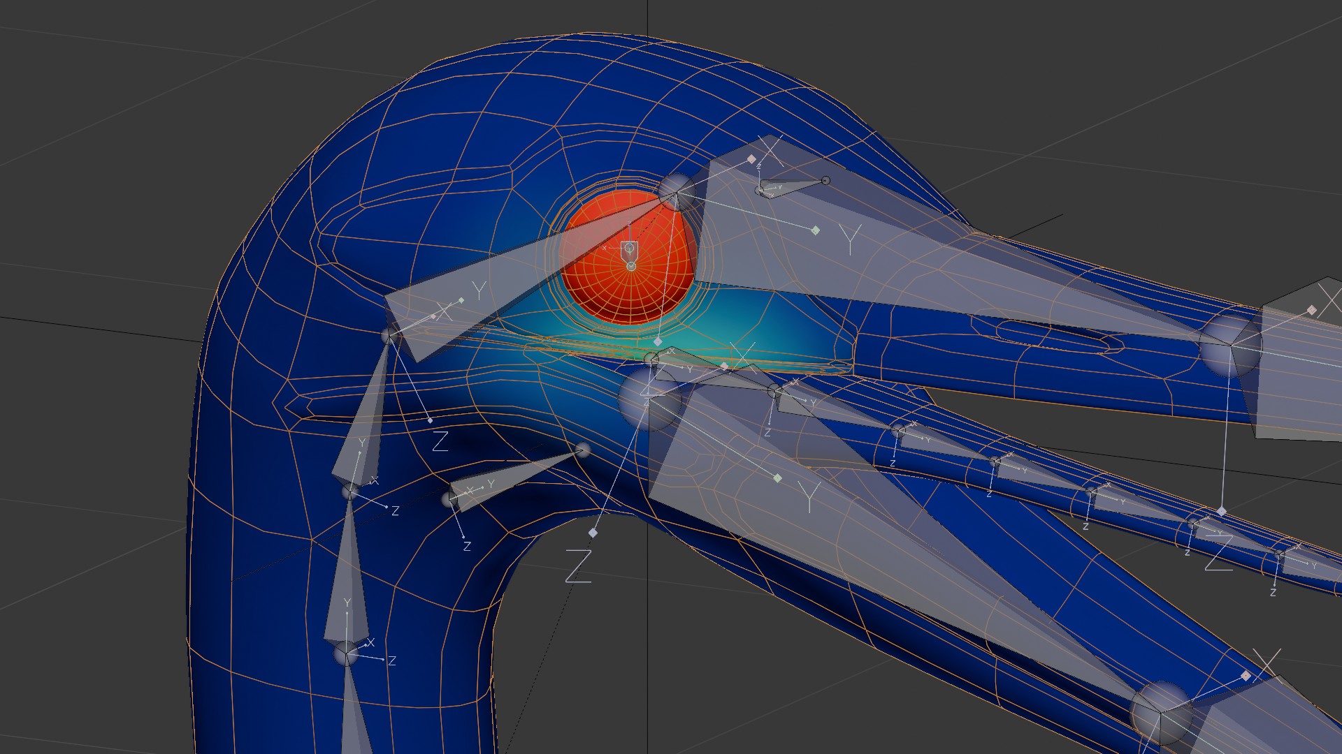 Das Rig angelegt und mit Symmetry die Seiten vervollständigt: