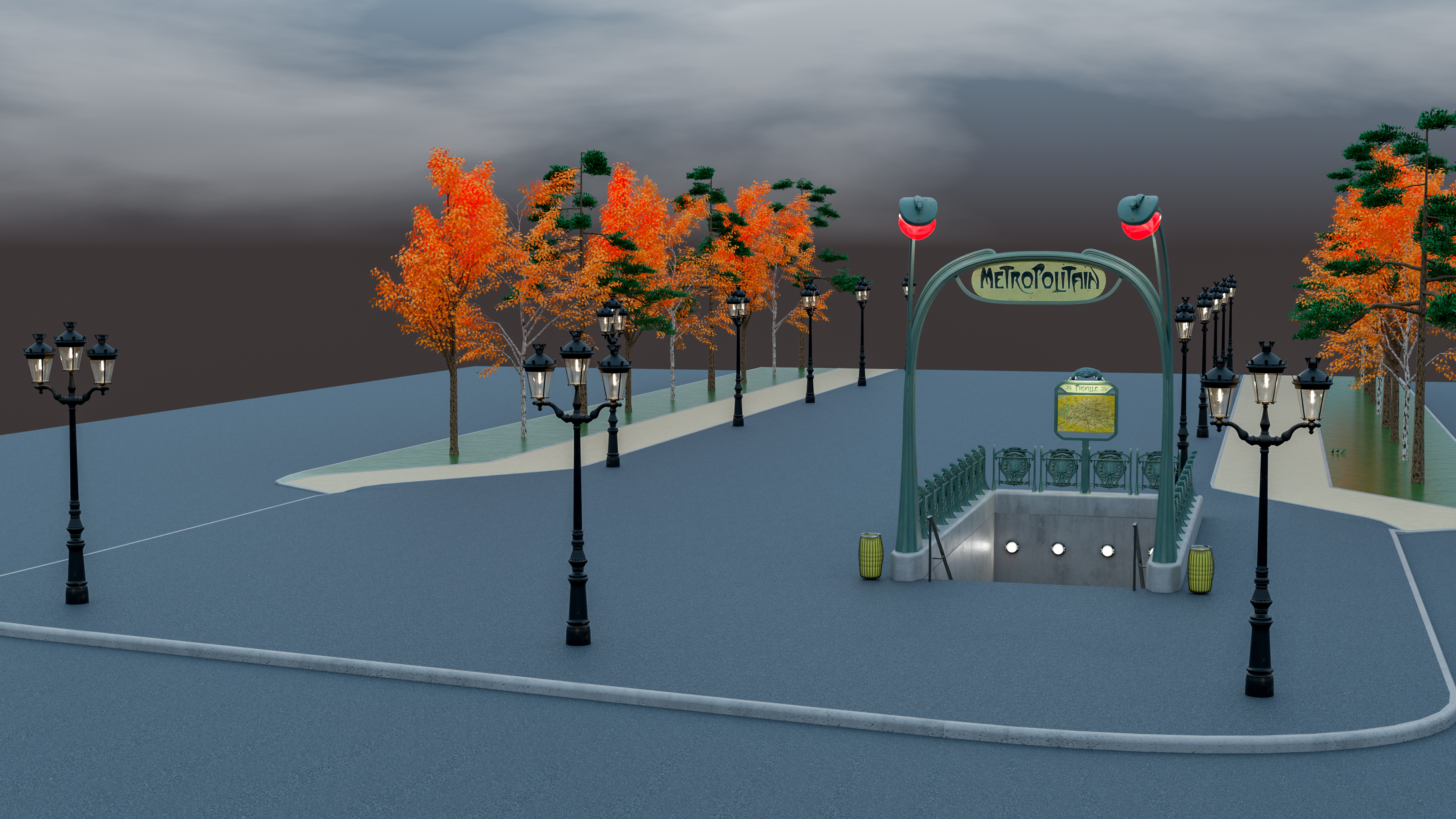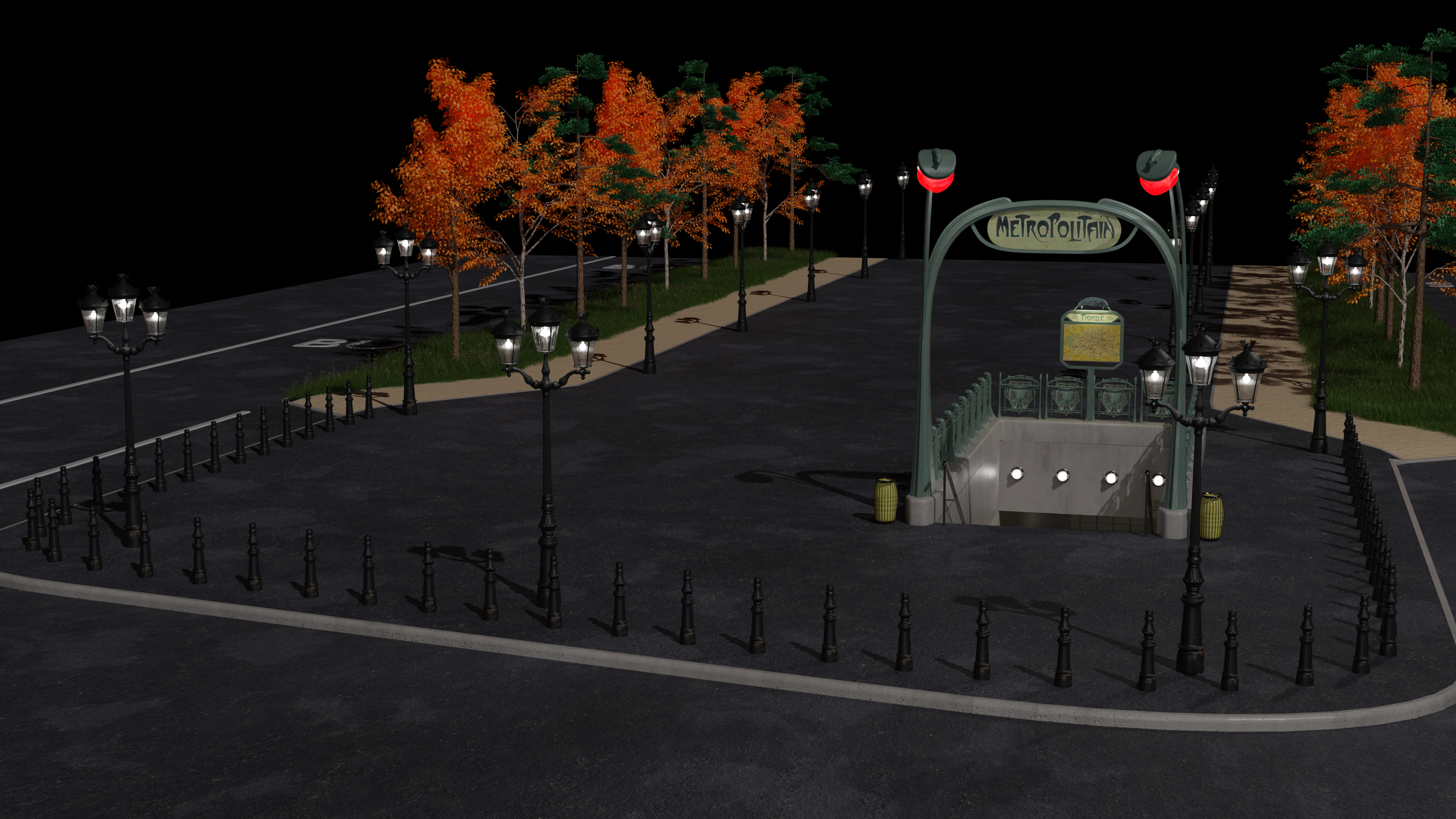 Das Treppengeländer ist fertig, die Tunnel Beleuchtung und ein Info Schild.