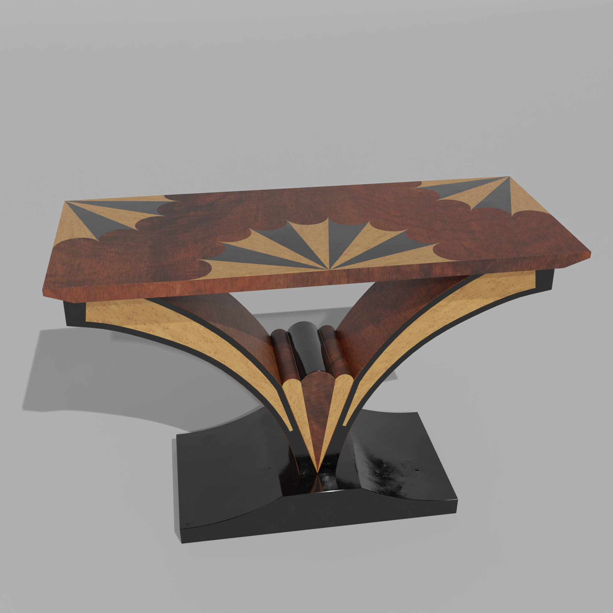 Art Déco Beistelltisch: Ein Meisterwerk der Handwerkskunst mit edlen Hölzern und Klavierlack.