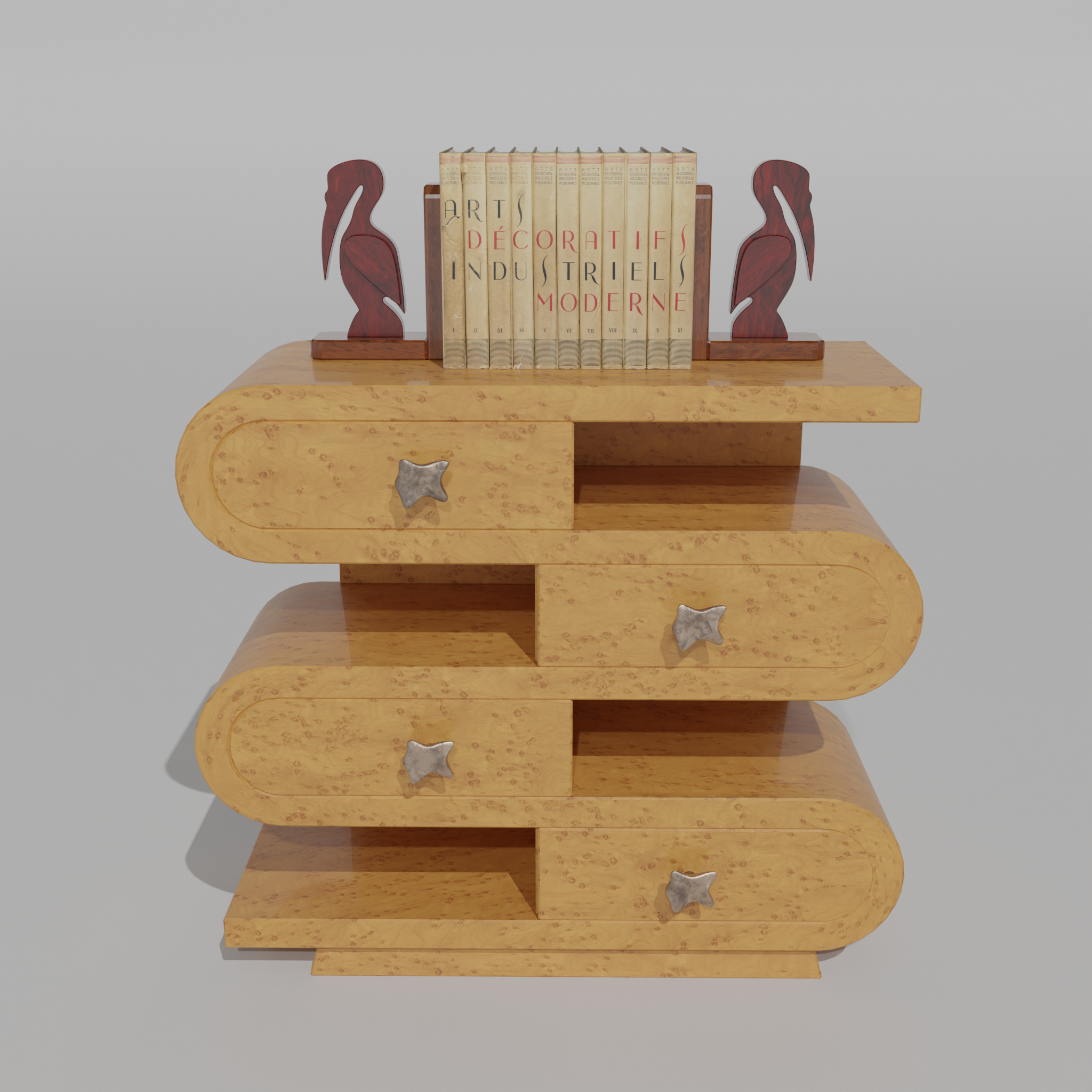 Art Déco Kommode: Ein elegantes Möbelstück mit Büchern und Buchstützen.