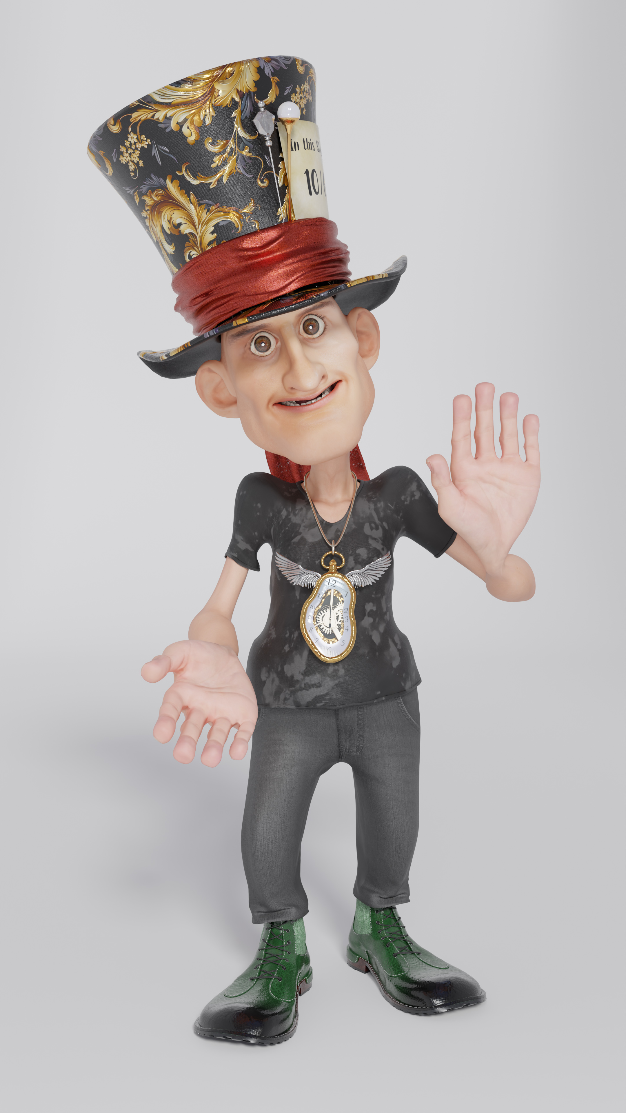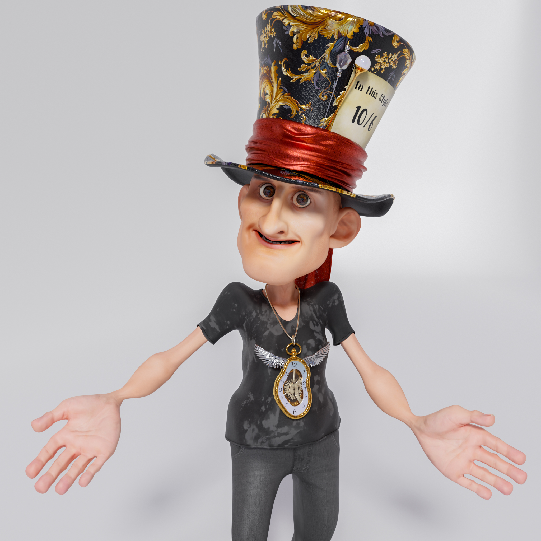 Um diesen besonderen Anlass zu feiern, hat sich Berta extra schick gemacht. "Bild 3" zeigt sie mit ihrem absoluten Lieblingshut. Ein hoher Zylinder, voll mit dunklen Mustern, goldenen Details und 'nem roten Band. Ein Statement-Piece, ein Ausrufezeichen für ihre Persönlichkeit und ihre Freude über den neuen Besitz.
