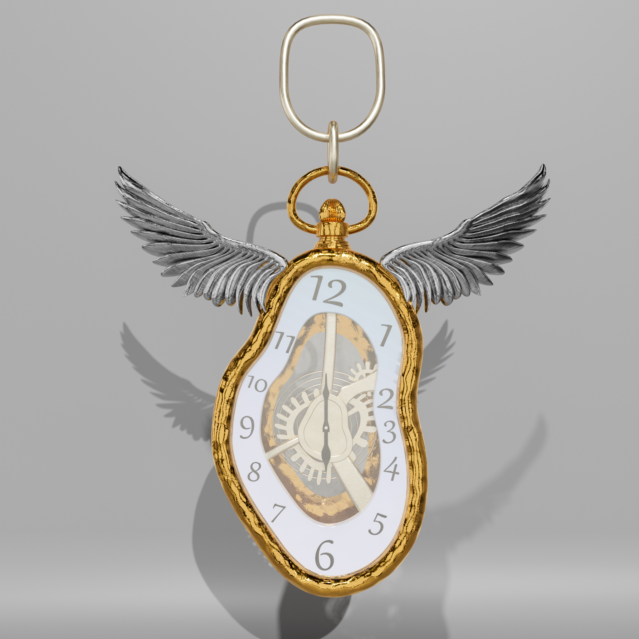 Dann kam der Twist. Jemand Besonderes schenkte ihr eine neue Uhr. "Bild 2" fängt diesen Moment ein. Die war alles andere als normal. Ein echtes Kunstwerk, irgendwie fließend in der Form mit zarten Flügeln dran. Total "in", wie Berta sagte, ein echter "Bling-Bling"-Hingucker. Nur mit der Zeitableserei hatte Berta so ihre Mühe. Runde Uhren, easy. Aber diese neue, organische Form hat sie echt kirre gemacht. Seitdem kam sie safe 'ne halbe Stunde zu spät zur Arbeit. Aber ihr Stolz auf dieses krasse Geschenk? Der hat jede Verspätung locker aufgewogen.