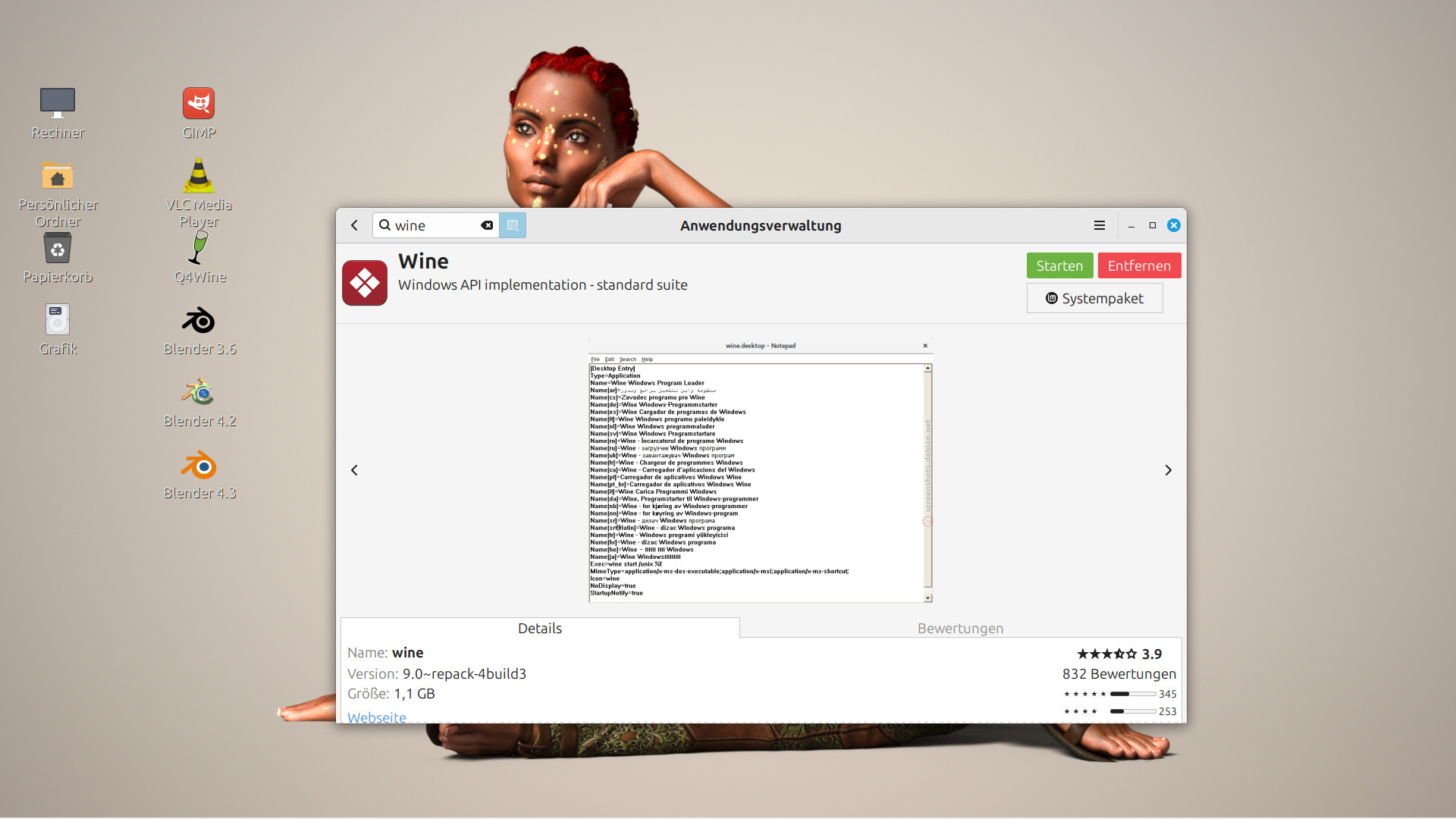 • Bei mir Linux Mint 22.1 Cinnamon habe ich mir über die Anwendungsverwaltung als erstes Wine installierte,