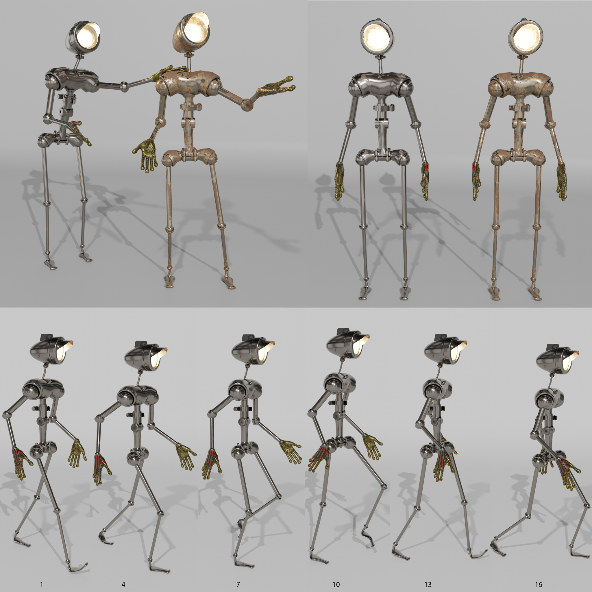 Borsche, der helle Kopf – Gehkreis – Dein vielseitiger Charakter für helle Ideen! Lerne Borsche kennen – einen einzigartigen und willensstarken Blender 4.4.1 Charakter, der mehr ist als nur eine alte Lampe. Hinter seinem metallischen Äußeren und dem charmanten Hauch von Rost verbirgt sich ein überraschend vielseitiger Geist. Borsche wurde einst für die präzise Beleuchtung unwegsamer Wege geschaffen, doch die Zeiten haben sich geändert. Heute verbringt er die meiste Zeit im gemütlichen Pavillon mit einer Tasse Pfefferminztee. Aber unterschätze ihn nicht! Sein langlebiger „Filament“ steht für unendliche Geduld, und sein reaktionsschneller „Quertexplast“-Kopfschalter zeugt von schneller Auffassungsgabe und scharfem Verstand. Dank seiner „Offenen-Hand-Technik“ ist Borsche stets fürsorglich und hilfsbereit und immer zur Stelle, wenn es darauf ankommt. Seine speziell entwickelten Hauptgelenke ermöglichen ihm sogar unerwartete Bewegungen – von präzisen Manövern bis hin zu einem überraschenden Lambada-Tanz (obwohl dieser selten vorkommt, da Borsche der Inbegriff der Ruhe ist). Dieses Blender 4.4.1 Modell bietet außergewöhnliche Flexibilität bei der Darstellung seines Alters und seines Zustands. Mit dem intuitiven „Rust Level“-Mix-Shader im Materialknoten kannst du den Rostgrad stufenlos anpassen – von leicht verrostetem bis hin zu einem vollständig von der Patina der Zeit überzogenen Look. Das beigefügte Katalogbild demonstriert diese Variationsmöglichkeiten eindrucksvoll. Diese Version von Borsche verfügt zusätzlich über einen klassischen (handanimierten) Gehzyklus. Dieser kann mithilfe eines Zyklusmodifikators im Graph-Editor endlos wiederholt werden. Die Kontrollknochen für Hals und Kopf bleiben davon unberührt und können separat animiert werden, um Borsche individuelle Aktionen und Blicke beim Gehen zu verleihen. Wichtiger Hinweis für die optimale Nutzung: Für einen reibungslosen Workflow beim Posieren statischer Szenen sowie während der Animation empfehle ich dringend, die Transformationsausrichtung in Blender auf „Lokal“ einzustellen. Ob Du Borsche bei ruhigen Teestunden, in skurrilen Alltagssituationen oder vielleicht sogar bei einem seiner legendären Doppeldecker-Flügeltänze präsentieren möchten – seiner „hellen“ Persönlichkeit sind kaum Grenzen gesetzt. Ich wünsche Ihnen viel Spaß mit dem Blender-Modell und wünsche Ihnen erfolgreiche Szenen.