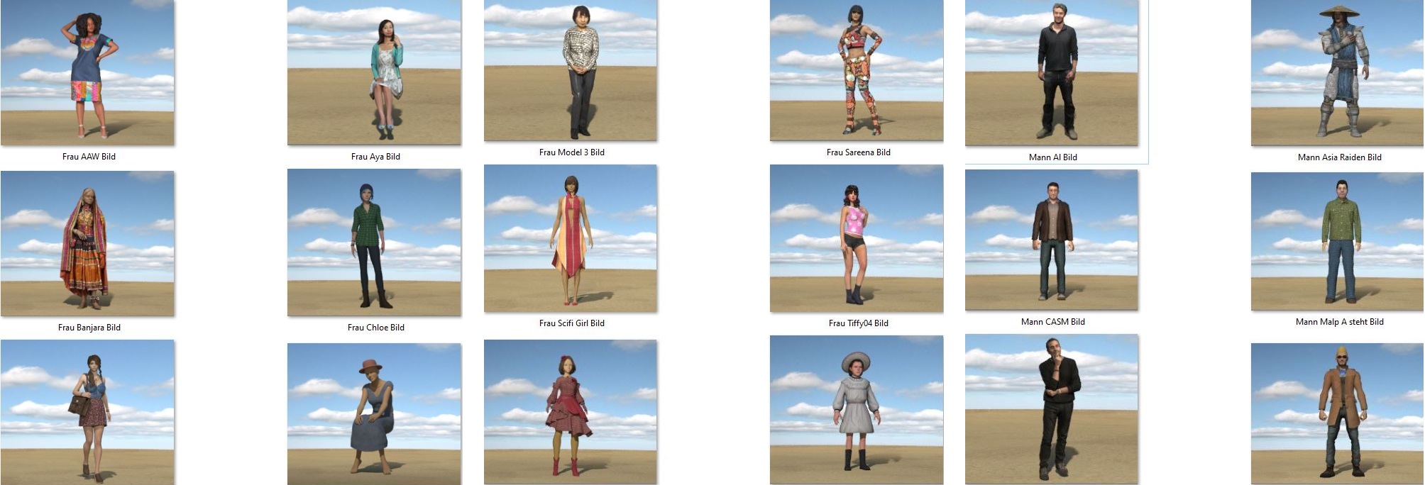 Für FlowScape 3D-Szenen in Stadt und Dorf benötigt man Modelle Menschen,