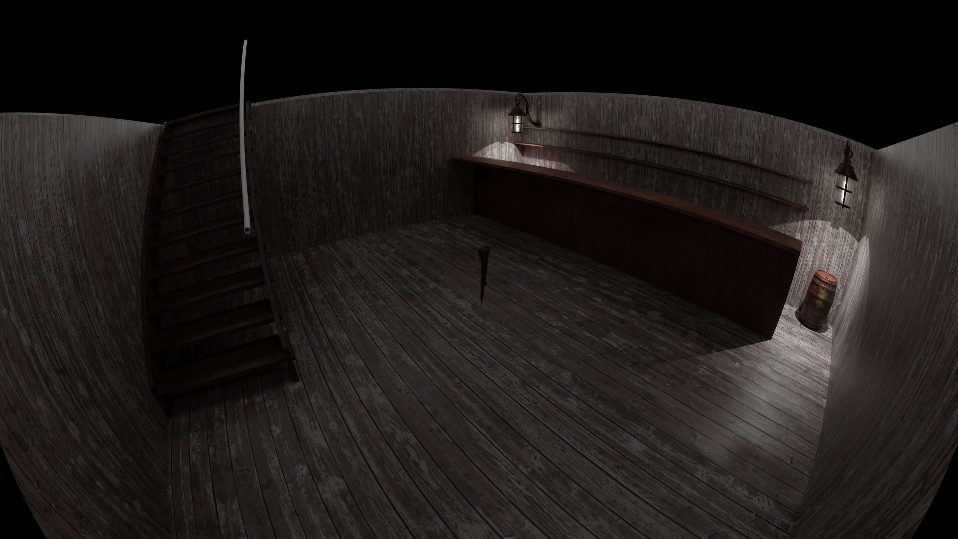 • die ersten render bilder um ein gefühl für die enge der Pinte zu gewinnen. es wurde eine raum höhe von 1.80 meter bis 2.15 meter ermittelt für solche Pinten. auserdem habe ich mich für 5 meter tresen entschieden mit einem seilichen hinter den tresen durch gang zu gewähren. das wird bestimmt schwierig gute camera posen zu ermitteln. Die seitenwände sind so zentriert das man diese nach ausen um klappen kan. ebenso boden und decke. dasd Fass ist 60 cm hoch. der tresen 100 cm. und 40 cm tief.