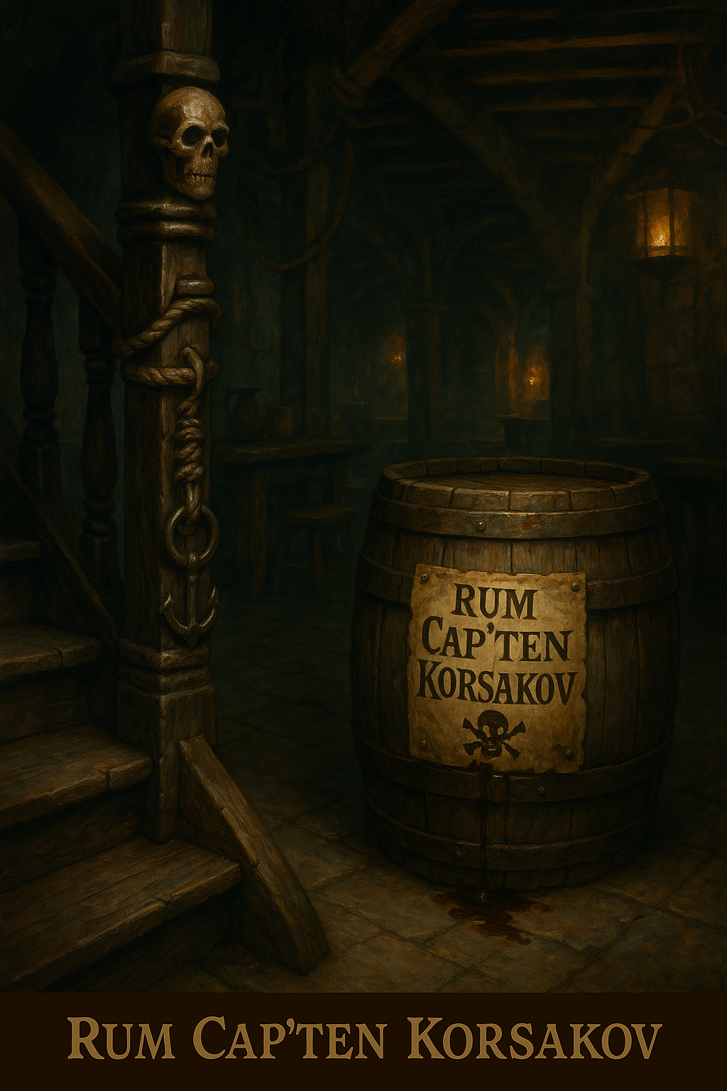 • Details: Kleine, aber feine Details werden die Szene lebendig machen – leere Krüge, verschütteter Rum, vielleicht eine alte Seekarte oder ein vergilbtes Kartenspiel.