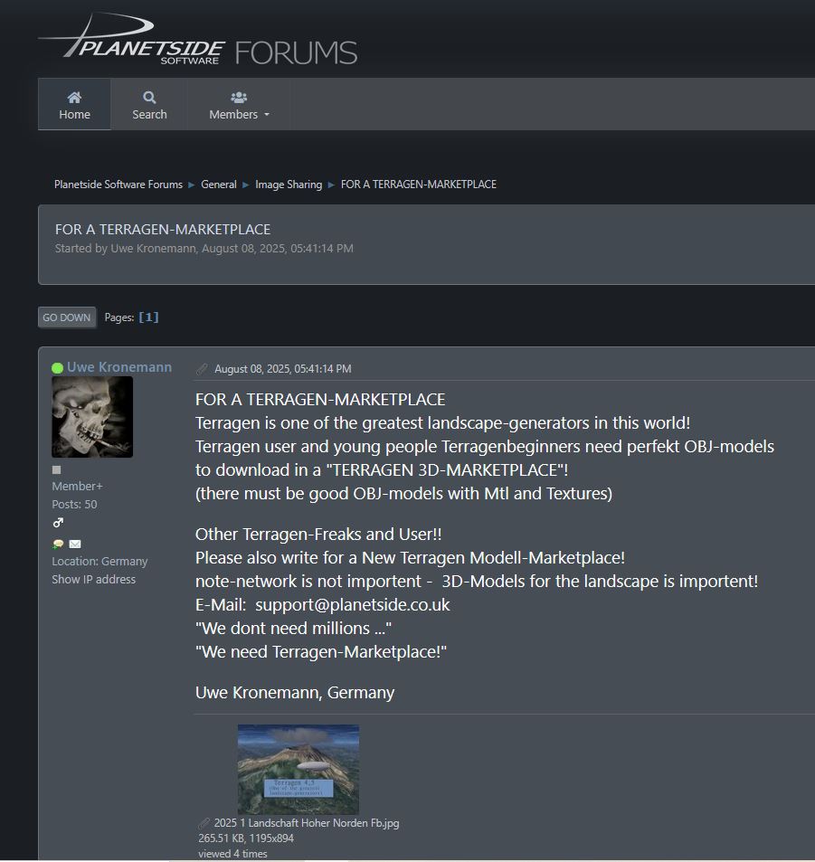 Terragen hat wenige regelmäßige user, auch im Forum Terragen L.A.