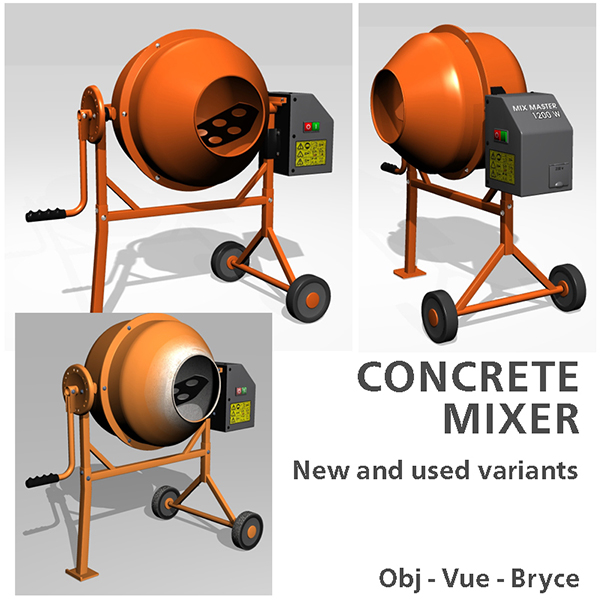 Texturiertes Modell eines Betonmischers in zwei Varianten - neu und gebraucht. Obj-, Vue- und Bryce-Format.
