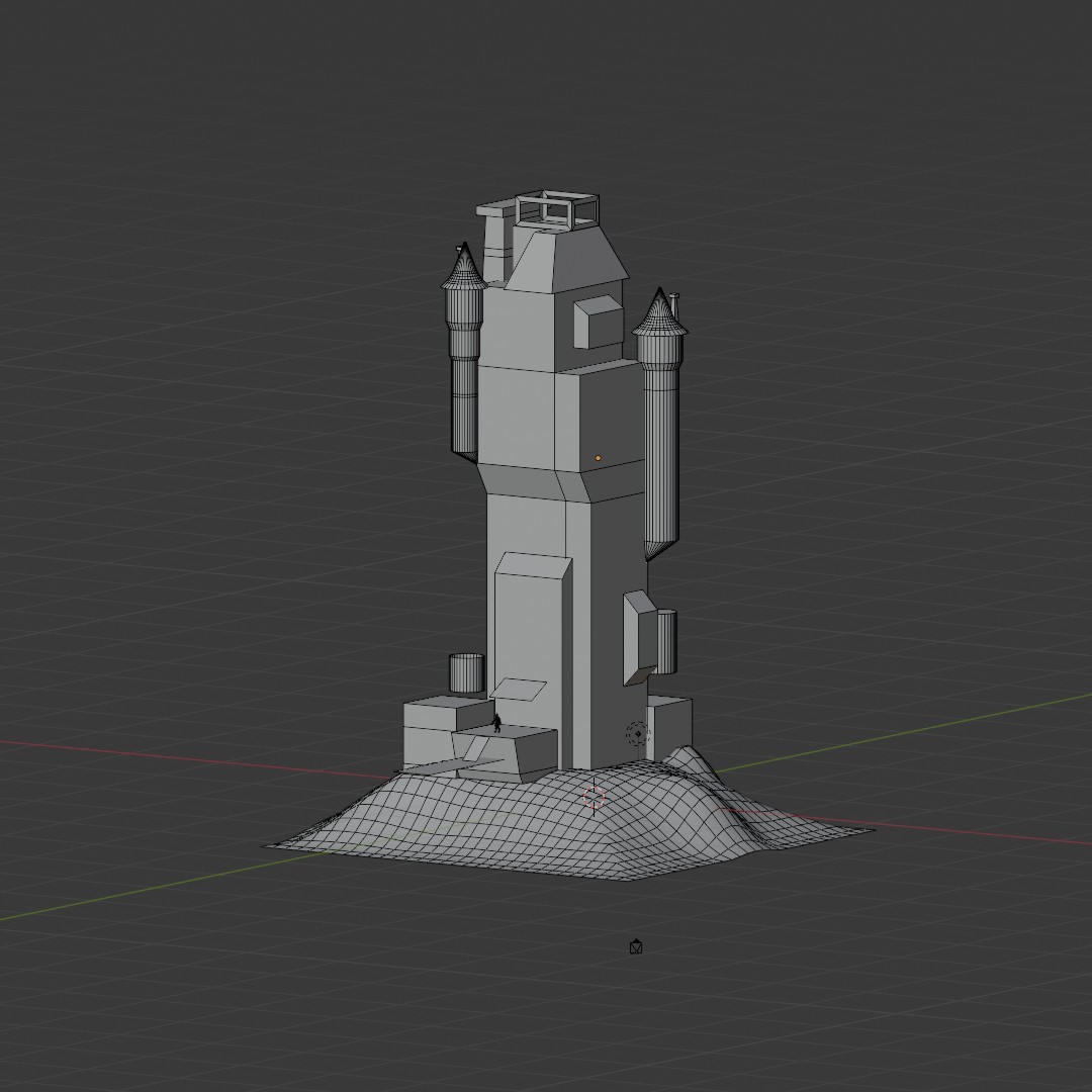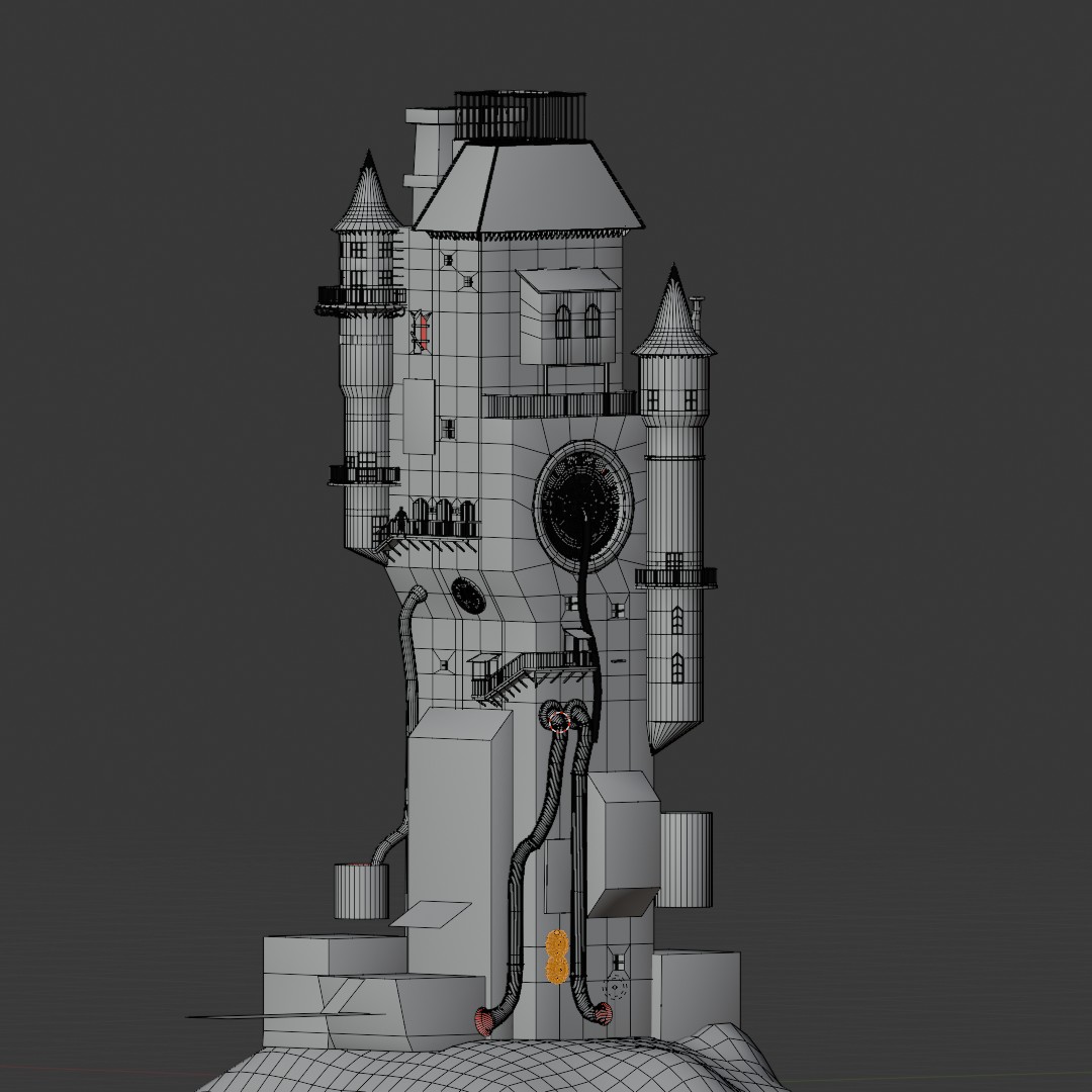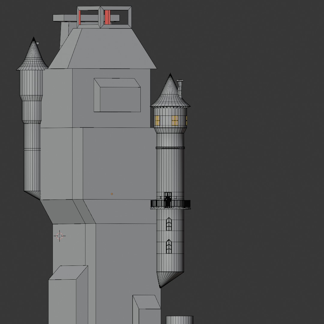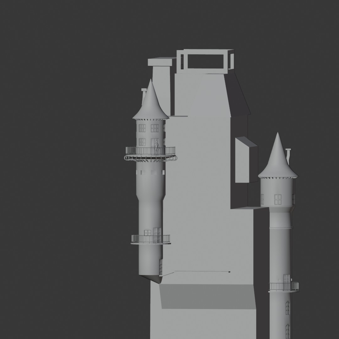 Ich habe beschlossen noch mal Häuslebau zu üben, kann nie schaden. Vorlage ist ein skurriles Teil von Pinterest. Läuft dort unter Steampunk Building und ist kein KI-Bild.