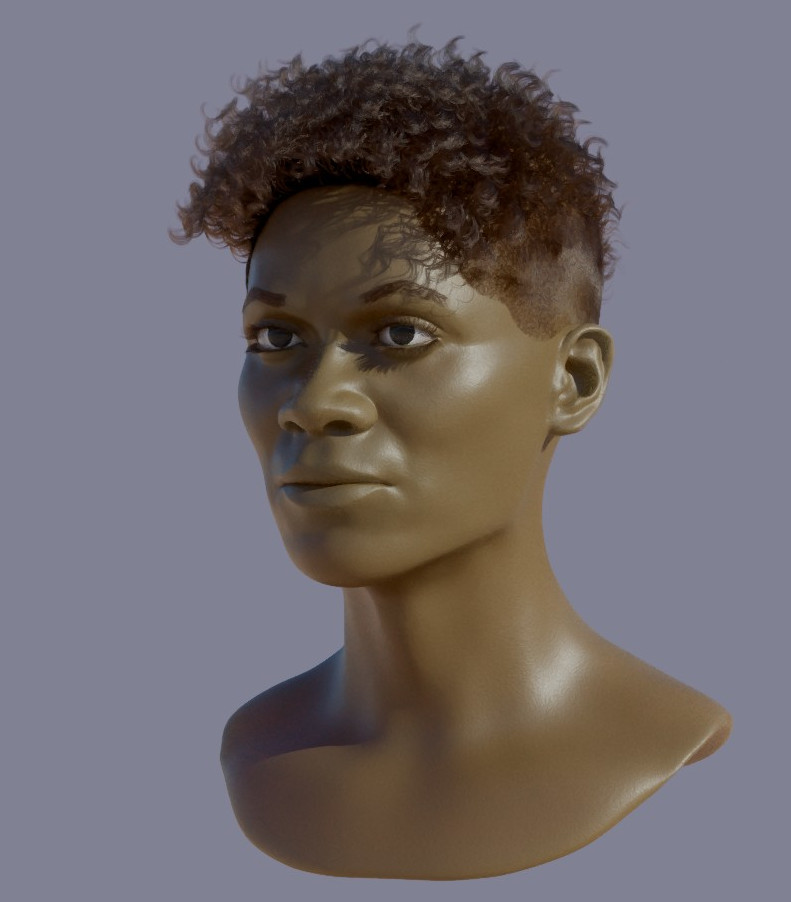 Ich habe mal andere Augen genommen und versuchsweise auch mal Brauen hinzugefügt und eine andere HDRI zur Beleuchtung. SSS ist vielleicht was viel, aber das ist ja erst mal nur ein Arbeitsmaterial..