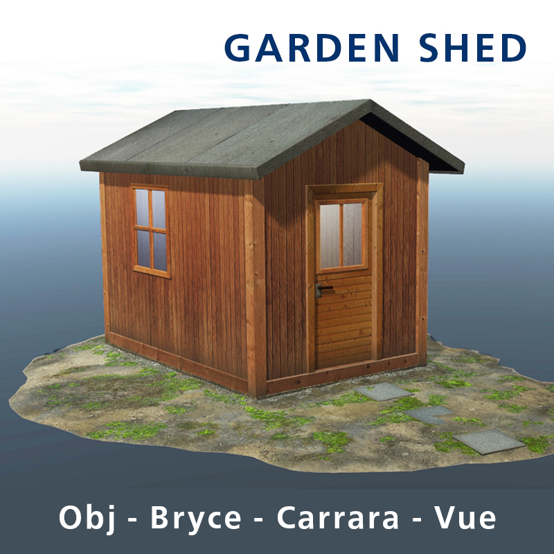 Gartenhaus mit Geländesockel in den Formaten Obj, Vue, Carrara und Bryce