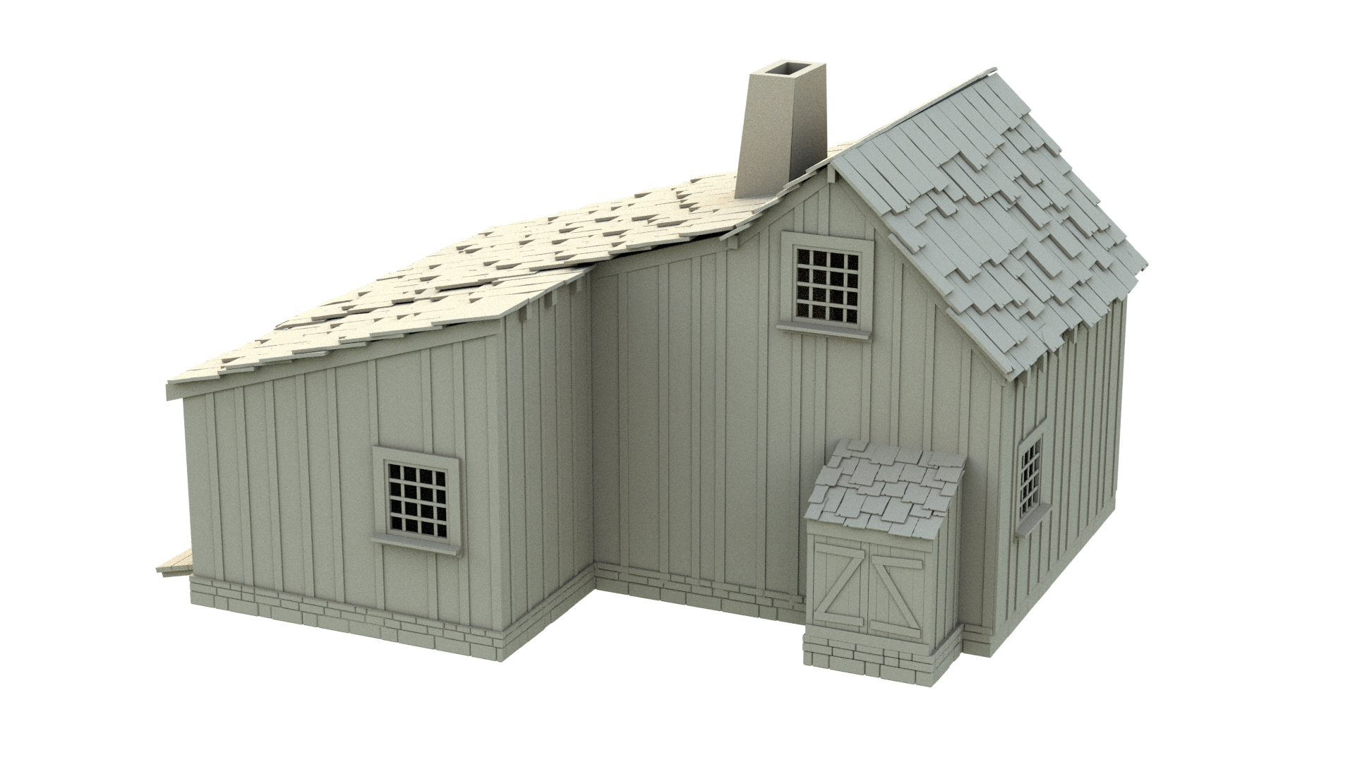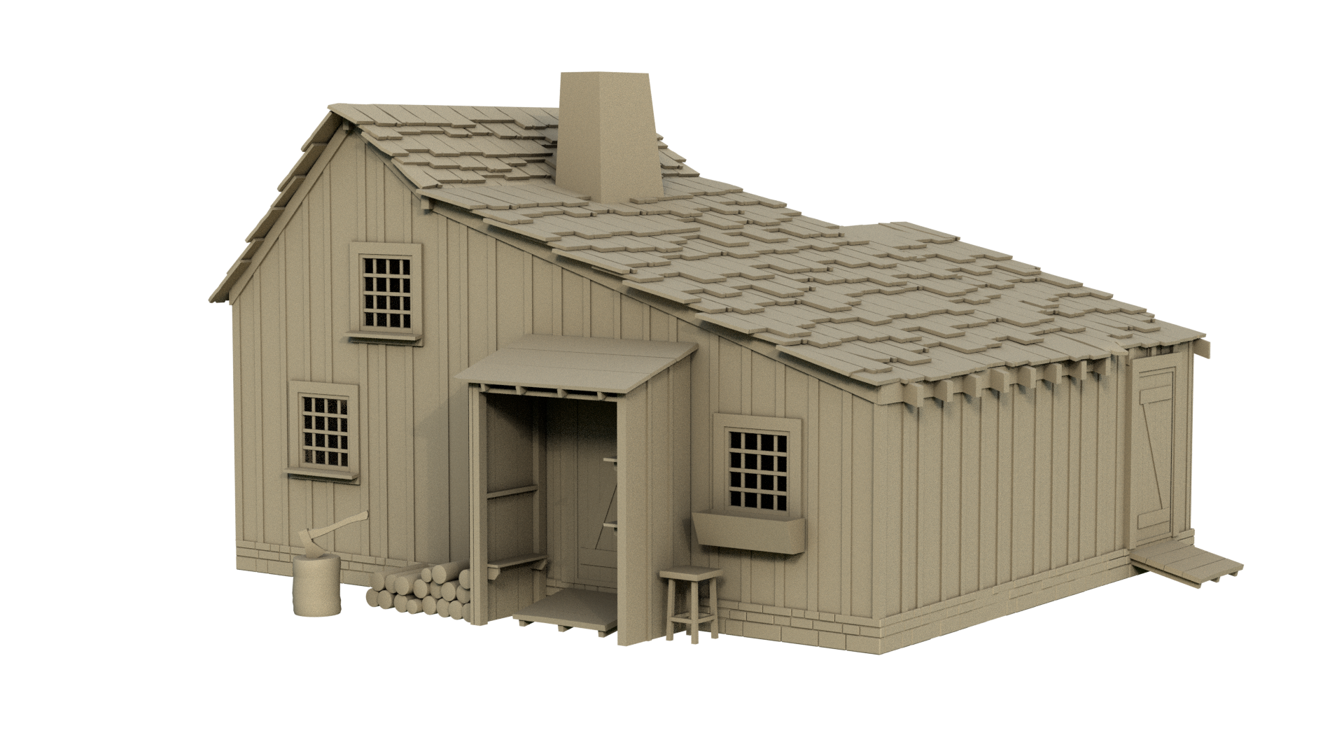 Das Schindeldach z.B. ist naürlich für Close-ups mit ausmodellierten Schindeln die optisch bessere Herangehensweise.