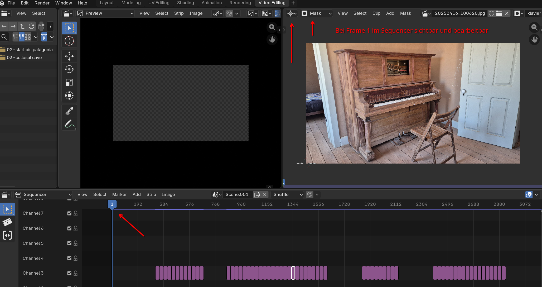 Das Bild ist somit in der Preview zu sehen aber nicht im Movie Clip Editor (Mask).