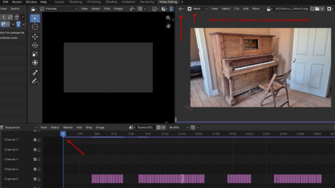 Um das Bild im Movie Clip Editor sehen zu können, muss ich in der Timeline des Sequencers auf Frame 0 gehen.