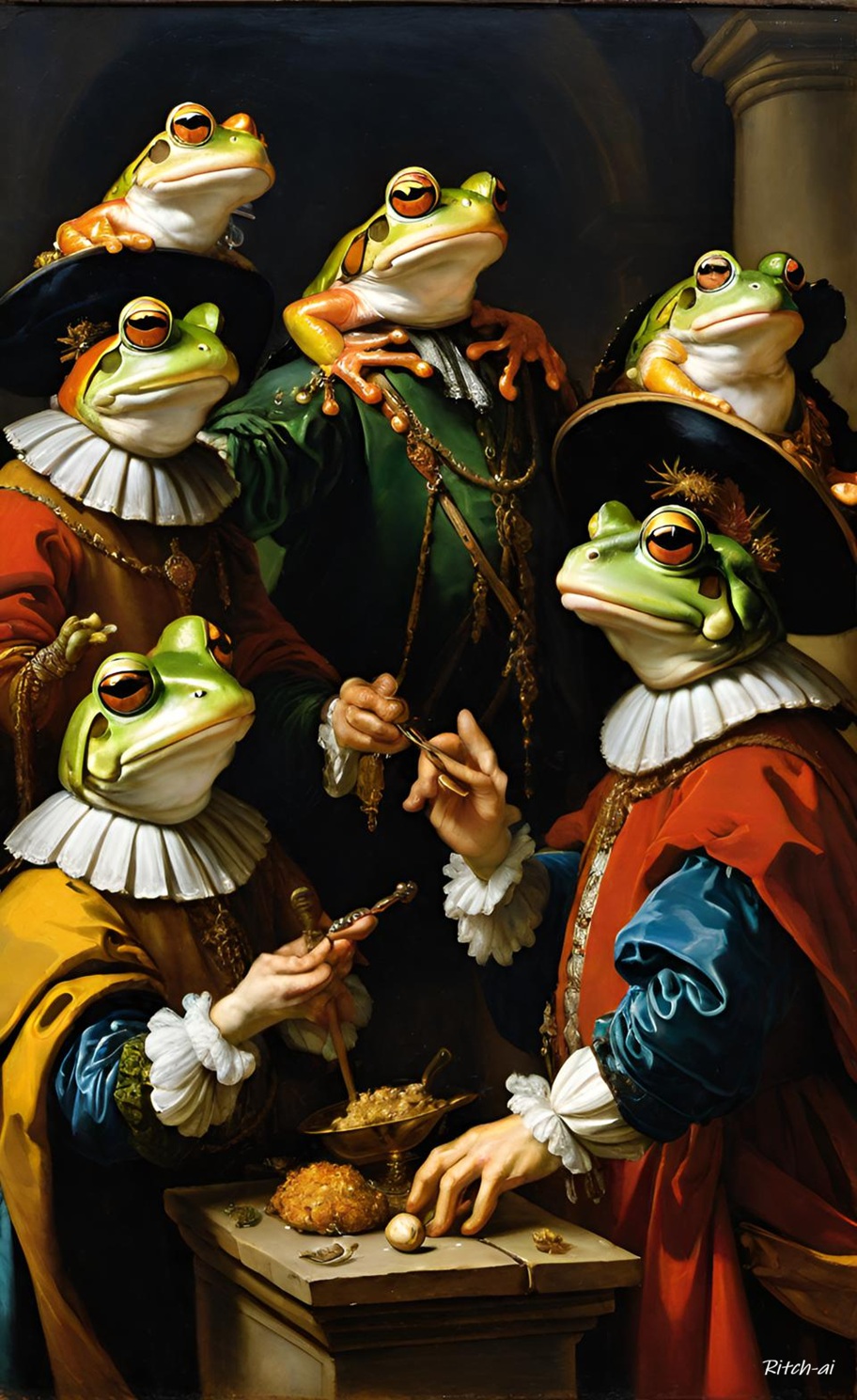 "funny frogs on sunset cliffs with never ending flowers" <- tag mit Ritch-ai