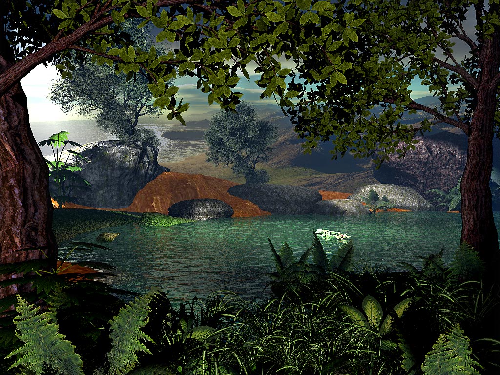 Das einzige, was mich nicht so sehr hinreißt, ist die rötliche Textur von dem Terrain am Seeufer. Da würde was grasähnliches, grünes besser aussehen, glaube ich.
