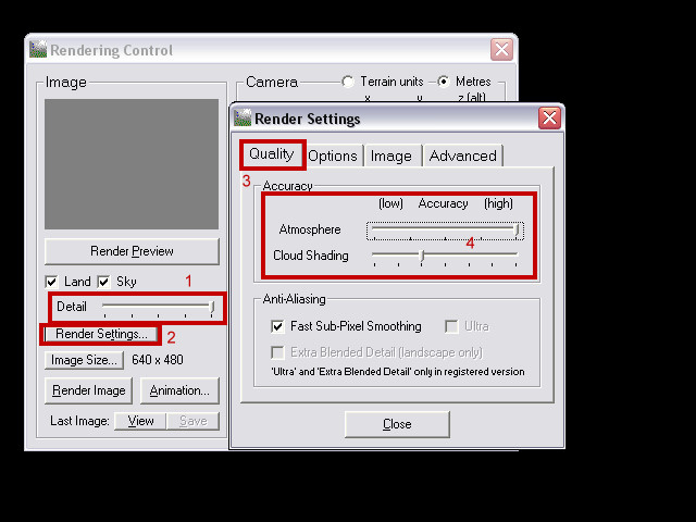 4. Wichtig hier die Atmosphere auf High... die Cloud Shading ist vielleicht später wichtig wenns um Schatten/Sonnenstrahl Effekten geht...