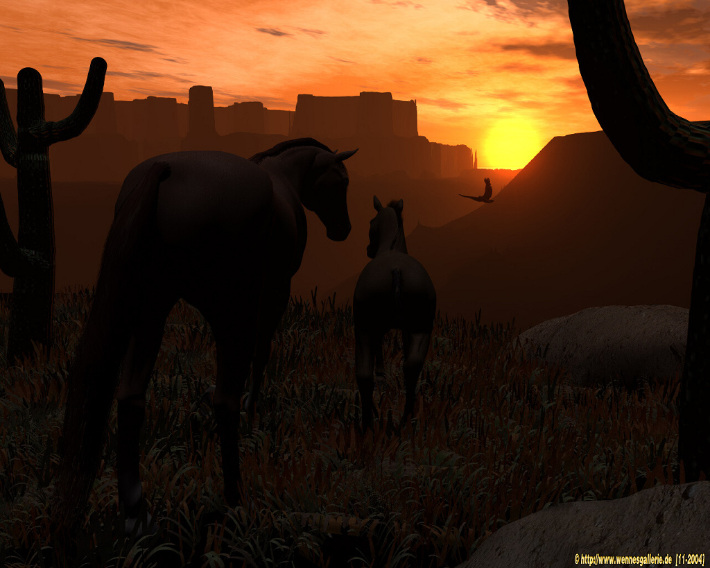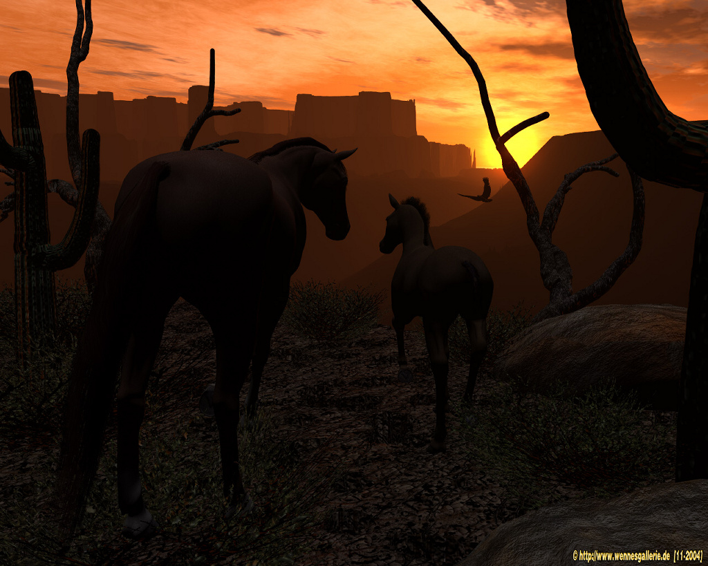 Naja, irgendwas musste da hin, wegen dem Kontrast. Sonst wären die Beine der Pferde irgendwie im Dunkeln verschwunden. Steppengras wäre 'ne Idee - das werd ich wohl dann mal probieren. (überlegt, ob er überhaupt 'n gescheites Steppengras hat ;) )