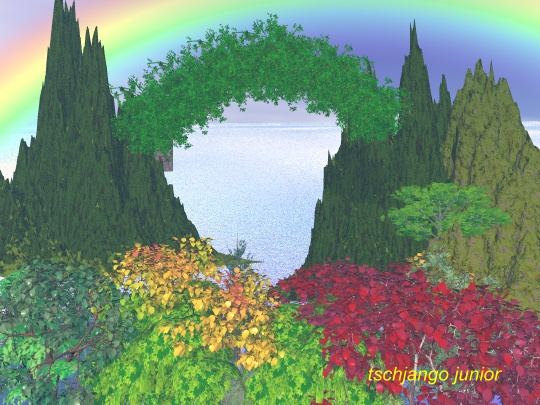Aha, ein Traumland - mit bunten Bäumen und Regenbogen. Nur etwas schade, daß der Regenbogen abgeschnitten ist.