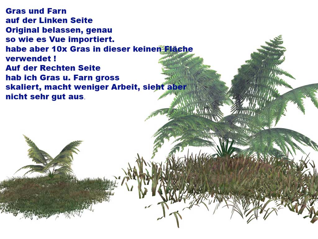 du solltest die rendereinstellung noch feiner einstellen das wirkt noch sehr krisselig ....der vordergrund ist wirklich noch sehr leer wie shadow sagte gräser blümchen davon kann es nicht genug sein ....nicht nur das der hirsch schwebt der hat an den hörnern keine textur die hast du scheinbar auch vergessen...den farn solltest evt. etwas kleiner machen der wirkt etwas mutiert ........