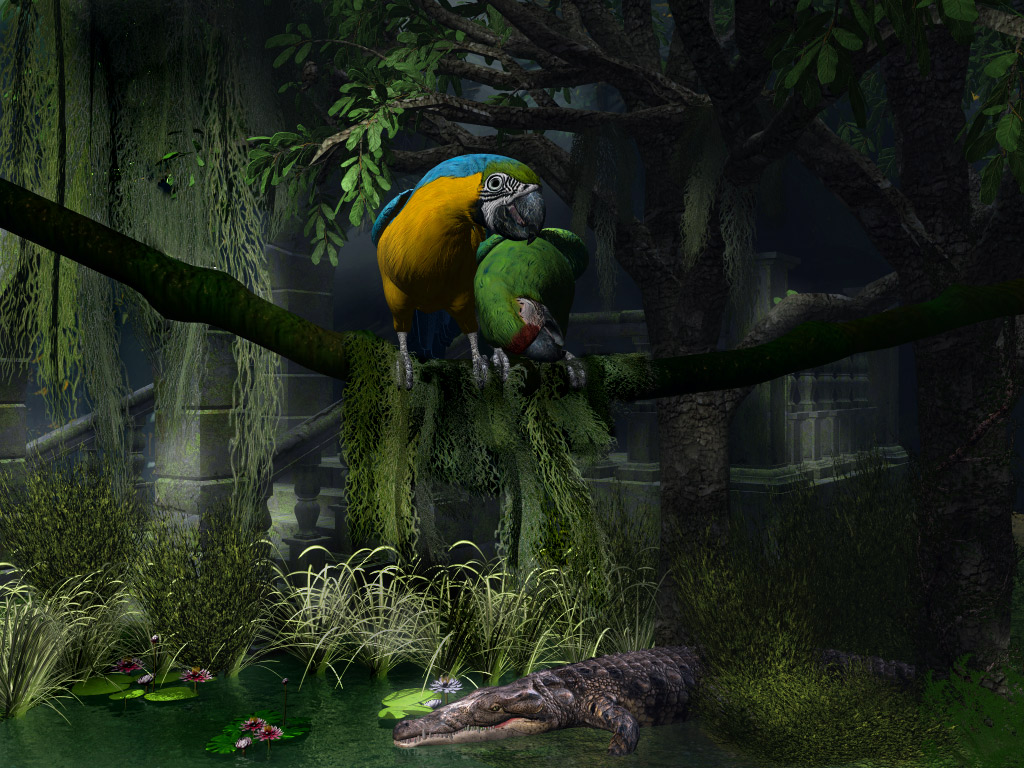 Ich würde allerdings das Krokodil weglassen, die Papageien sind allein schön genug.