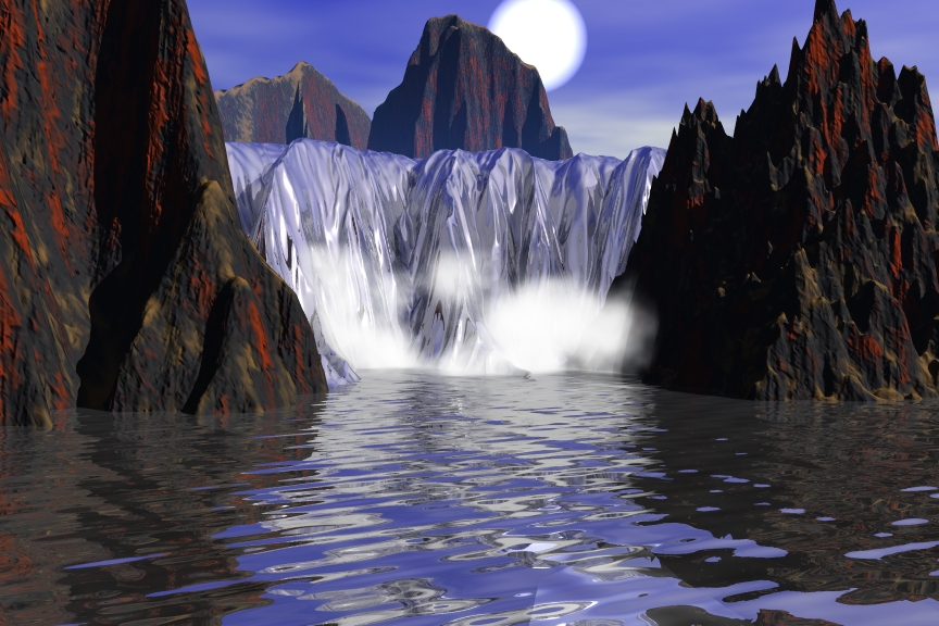Wenn du aber der Textur des fallenden Wassers noch ein wenig die Reflexion nimmst, es etwas transparenter machst und darunter noch ein Terrain mit Felstextur platzierst ( das des Wassers kopieren. einfügen und etwas verkleinern) dann schauts bestimmt noch besser aus.