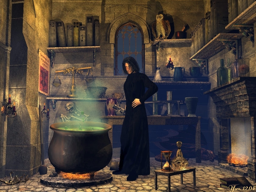 Ich nehme an, das ist die Giftküche von Professor Snape in Hogwarts, wo Harry Potter zur Schule geht. Sieht jedenfalls genau so aus, auch Snape ist unverkennbar.