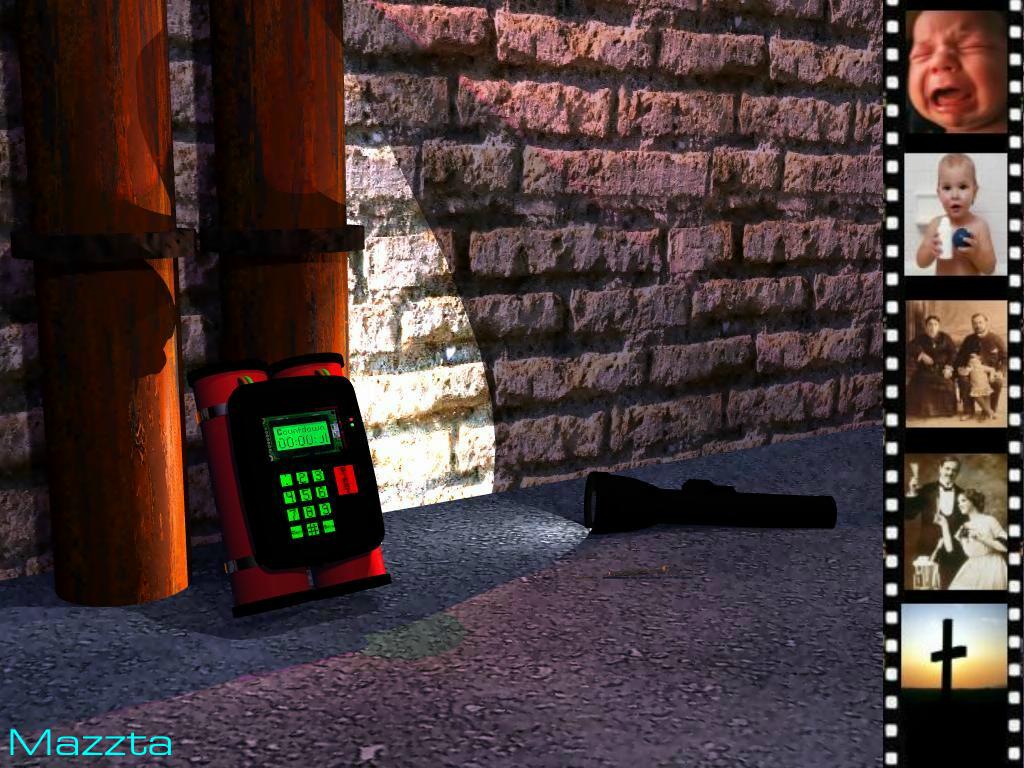 Gestern abend hatte ich irgendwie so eine merkwürdige Idee, was einem wohl in seiner letzten Sekunde durch den Kopf geht. Vielleicht so eine Art Filmstreifen, mit allen wichtigen Situationen des eigenen Lebens? Naja, ich hatte da so eine Idee und wollte die mal umsetzen. Die Situation soll sein, dass jemand vor einer Zeitbombe steht und nur noch sieht, wie der Timer von 1 auf 0 wechselt. Aber seht selbst :).