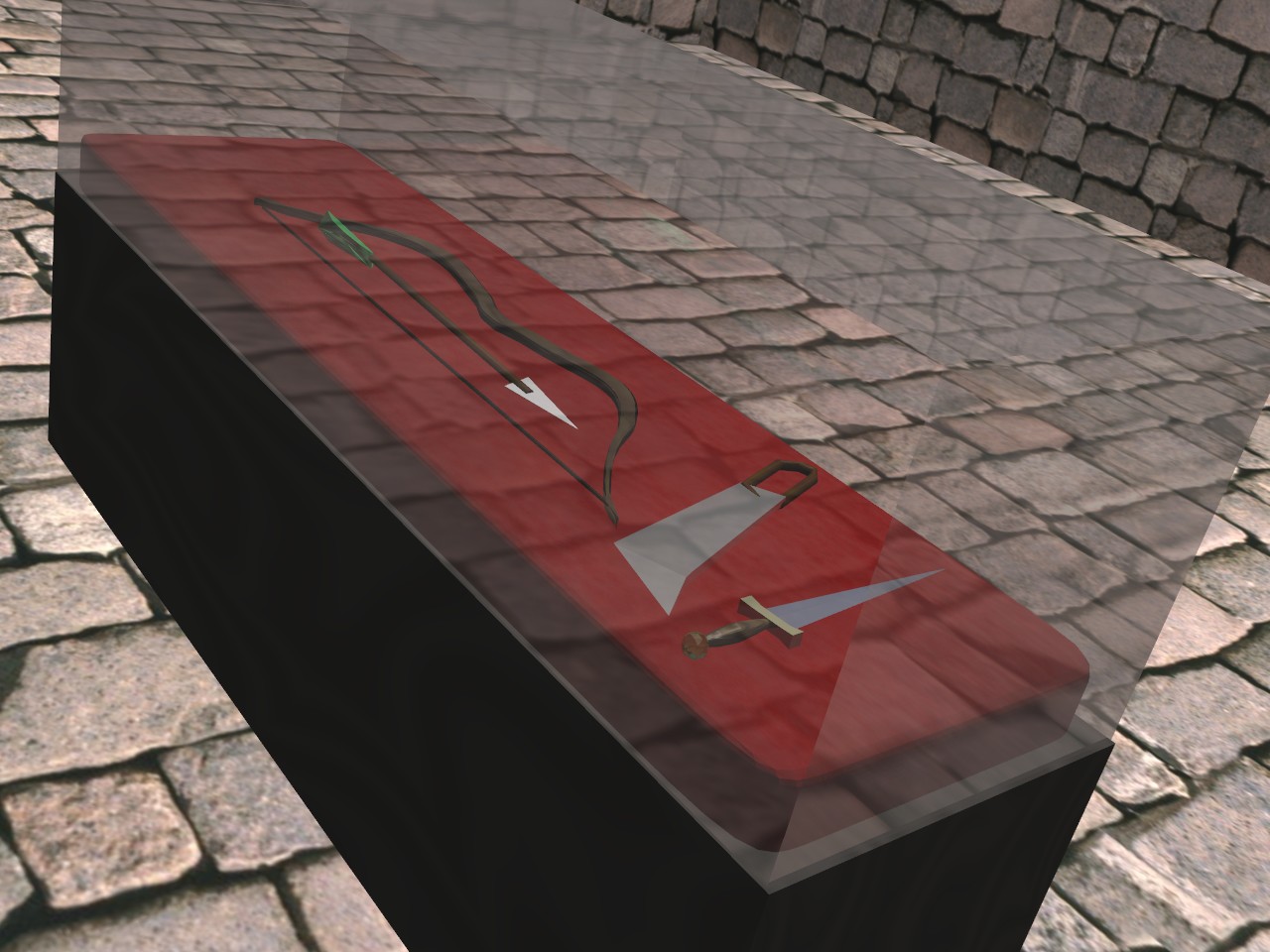 Hmm, komm nun mit der Blender Bedienung (nach 100ten Seiten Tuts...) einigermassen klar... :schiel:irre Mein Ziel hier war es, eine Vitrine mit möglichst realistischem Glas zu Basteln. Darin hab ich nun Probeweise meine "Waffensammlung" ausgestellt.