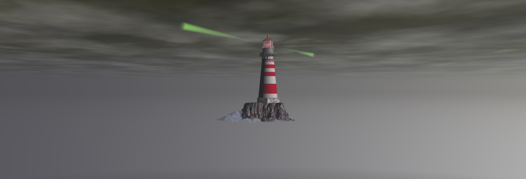 Eine schäumende Brandung kannst mit einem Terrain machen und der entsprechenden Textur. Erstelle ein Terrain, geh in den terrain Editor, klicke auf den kleinen Pfeil bei "Fraktal".. hier versuch mal "Zorch".. dann klicke neben "Fraktal" auf die kleine Kugel links (das Terrain wird sich dann verändern) das machst du einfach so lange bis ein für dich passendes Terrain dabei ist. Zurück im Arbeitsfeld legst du das Terrain ein wenig "steil" gegen den Fels mit dem Leuchtturm.