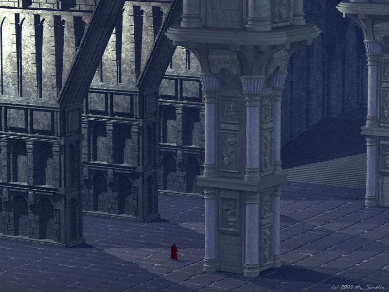 Den Kontrast der Größe des Gebäudes zur Größe des Typen mit dem roten Umhang find ich irgendwie klasse. Das Model ist spitze geworden. ![]()