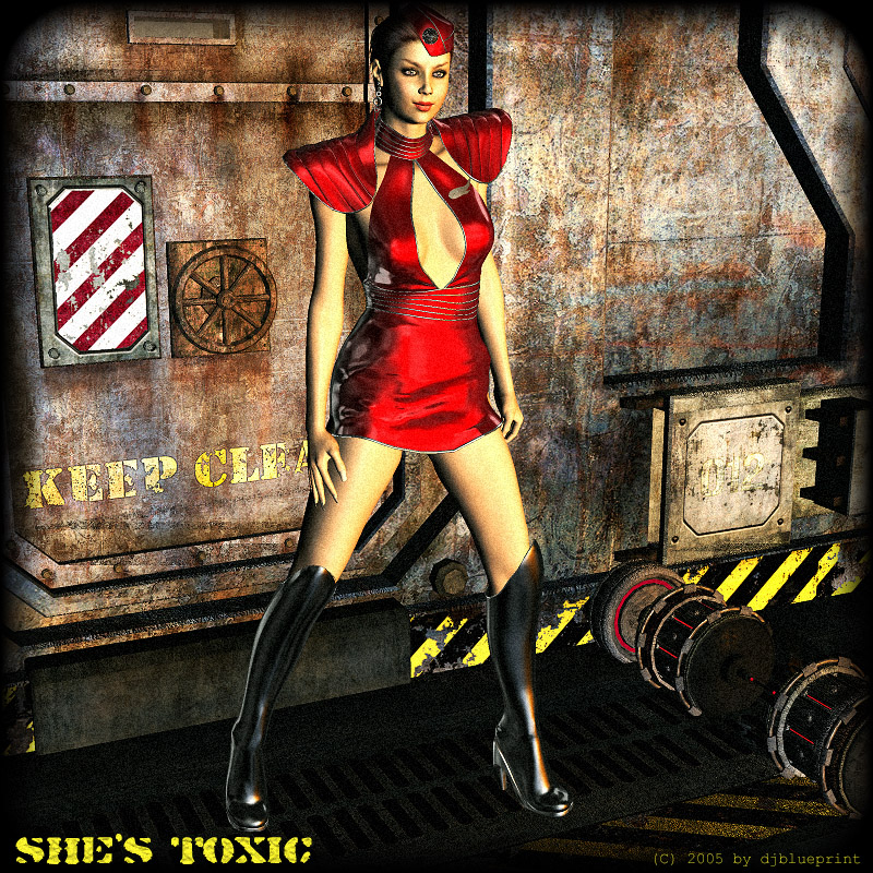 Die Klamotten sind "V3 To-X-ic" von Baron_Vlad_Harkonnen, das Mädel ist "Dolly 2" von Vali. Das Hintergrund-Prop war'n Freebie bei DAZ.