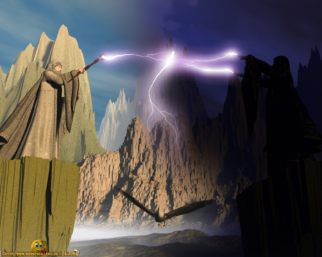 Nun noch die dunkle Ebene auf die helle Hintergrundebene platziert, das ganze zu einer Ebene gemacht und die Blitze platziert.