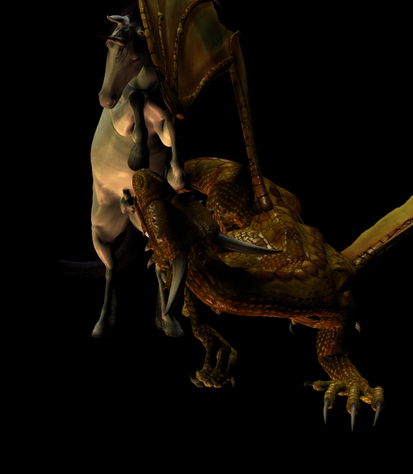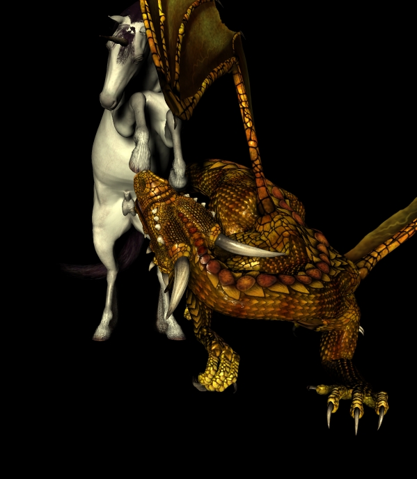 durch das neue licht, wirkt das einhorn jetzt etwas lebendiger, die transparenz der drachenflügel hab ich etwas heruntergefahren und das wasser vorne etwas bewegter gestaltet