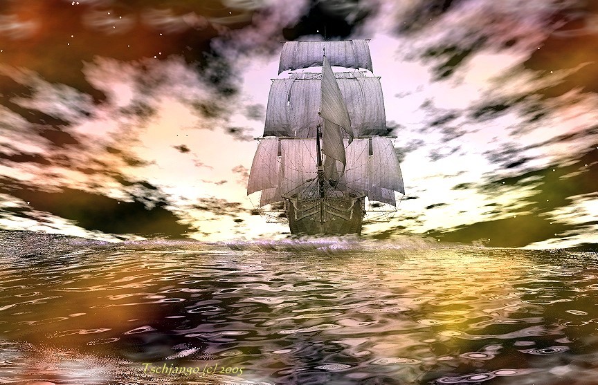 Das Bild sieht echt topp aus. Vor allen der Himmel um das Schiff. Als ob es direkt aus einer anderen Dimension kommen würde. Das Wasser sieht so echt aus, dass ich beinahe dachte, jetzt läuft´s mir aus dem Bildschirm. ![]()