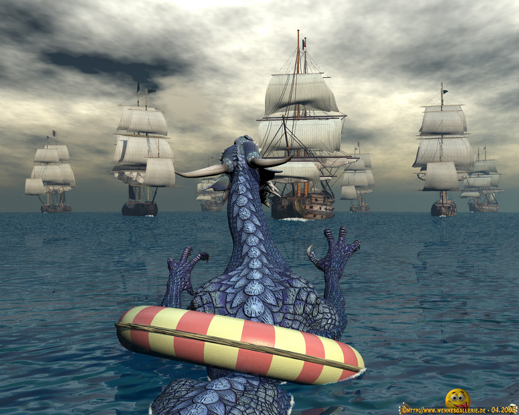 Ob ihm nun die Schiffe zur Hilfe eilen oder ob sie ihn doch eher für das Seeungeheuer halten, das der alten Sage nach die Meere unsicher machen soll? 8o :P