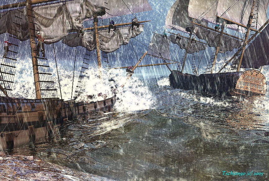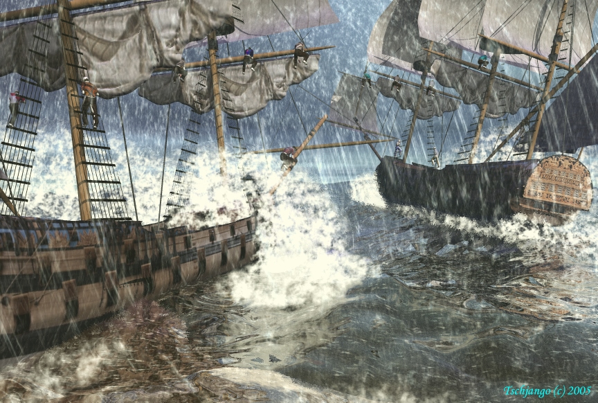 das linke schiff hat es wohl bald hinter sich, und die leute sind ein wenig groß geraten