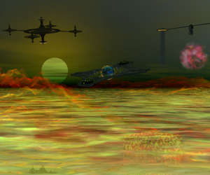 Die Farben und die Nebelschwaden sind dir gut gelungen, sieht schon sehr alien-mäßig aus.